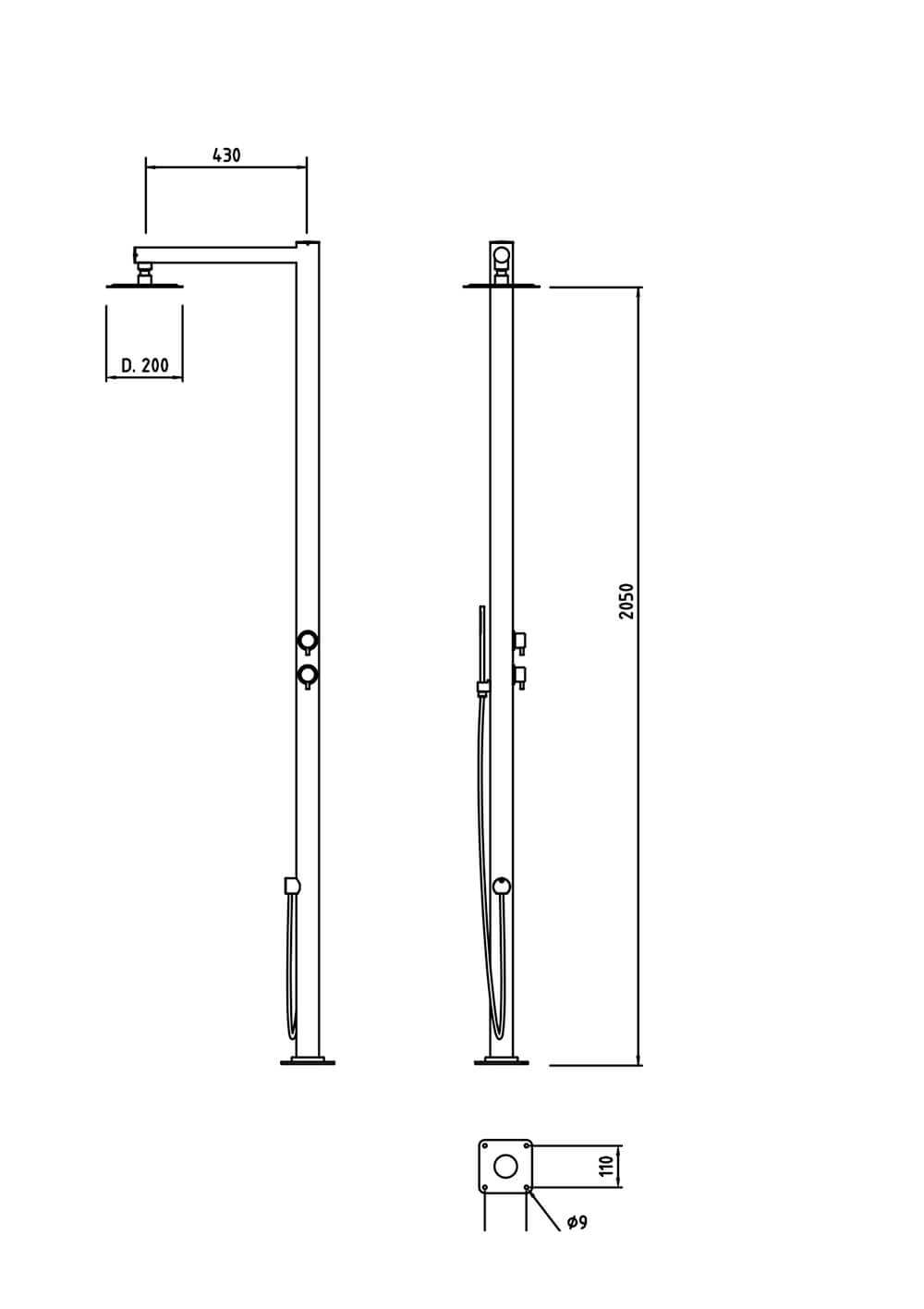 Ama Luxury Venere Gartendusche mit Mischer und Handbrause aus Stahl