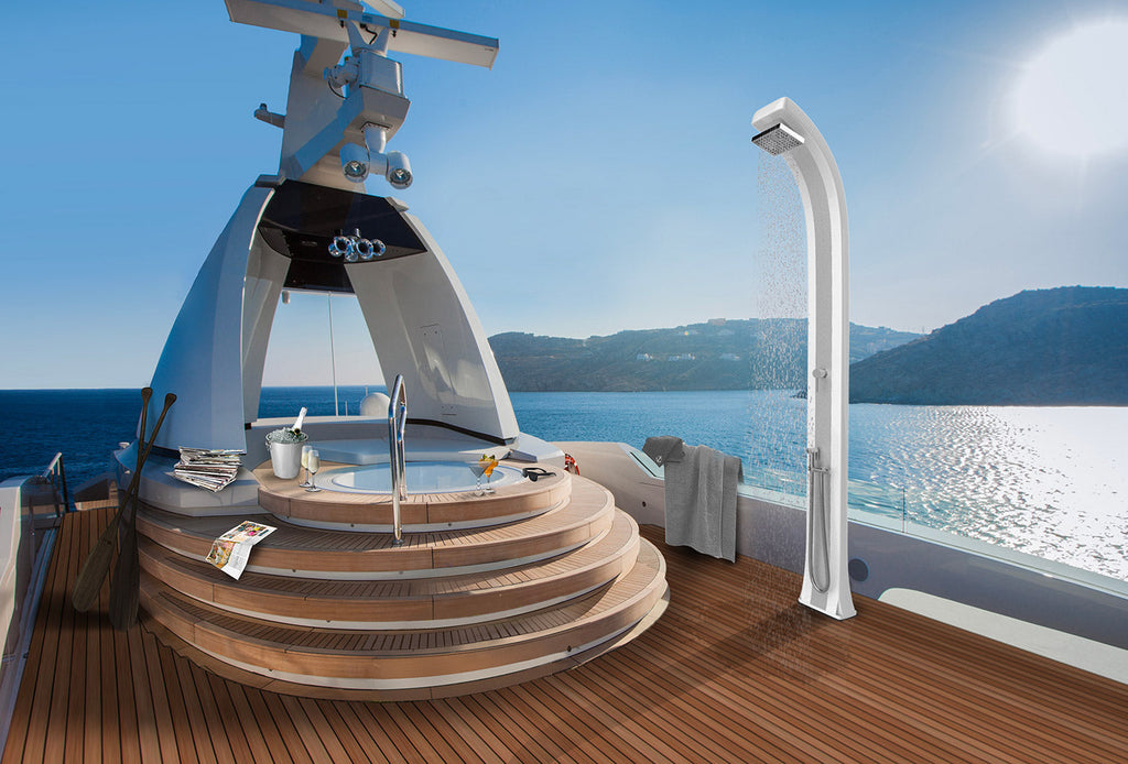L'armonia e l'eleganza delle sue forme la rendono un complemento d'arredo adatto per qualsiasi ambientazione, sia solo per il giardino o se necessitate di una doccia per la vostra piscina. Ideale per strutture pubbliche e balneari.