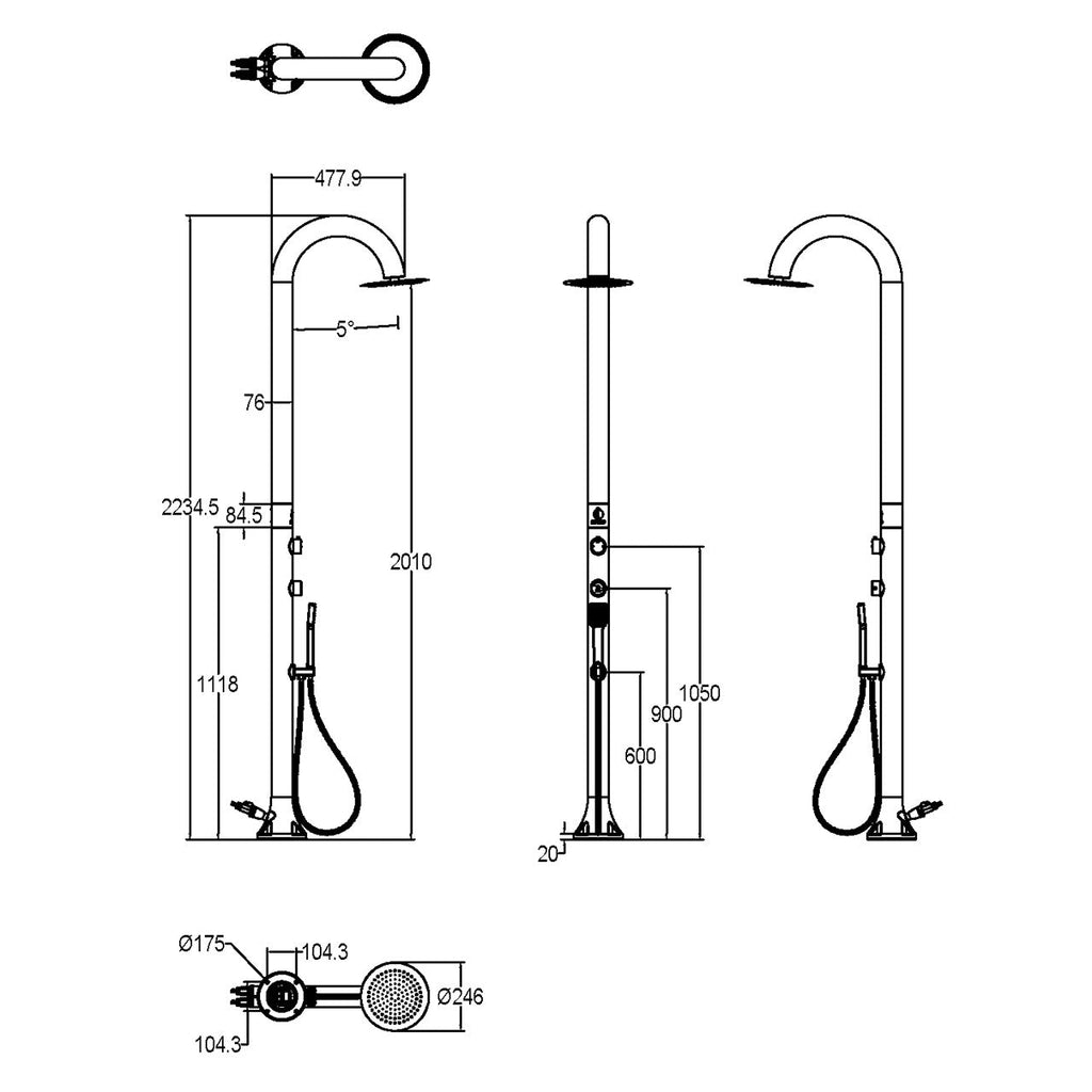 Doccia da Giardino Miscelatore e Doccetta 17,5x17,5xH223,5 cm Sined Luna Bianca
