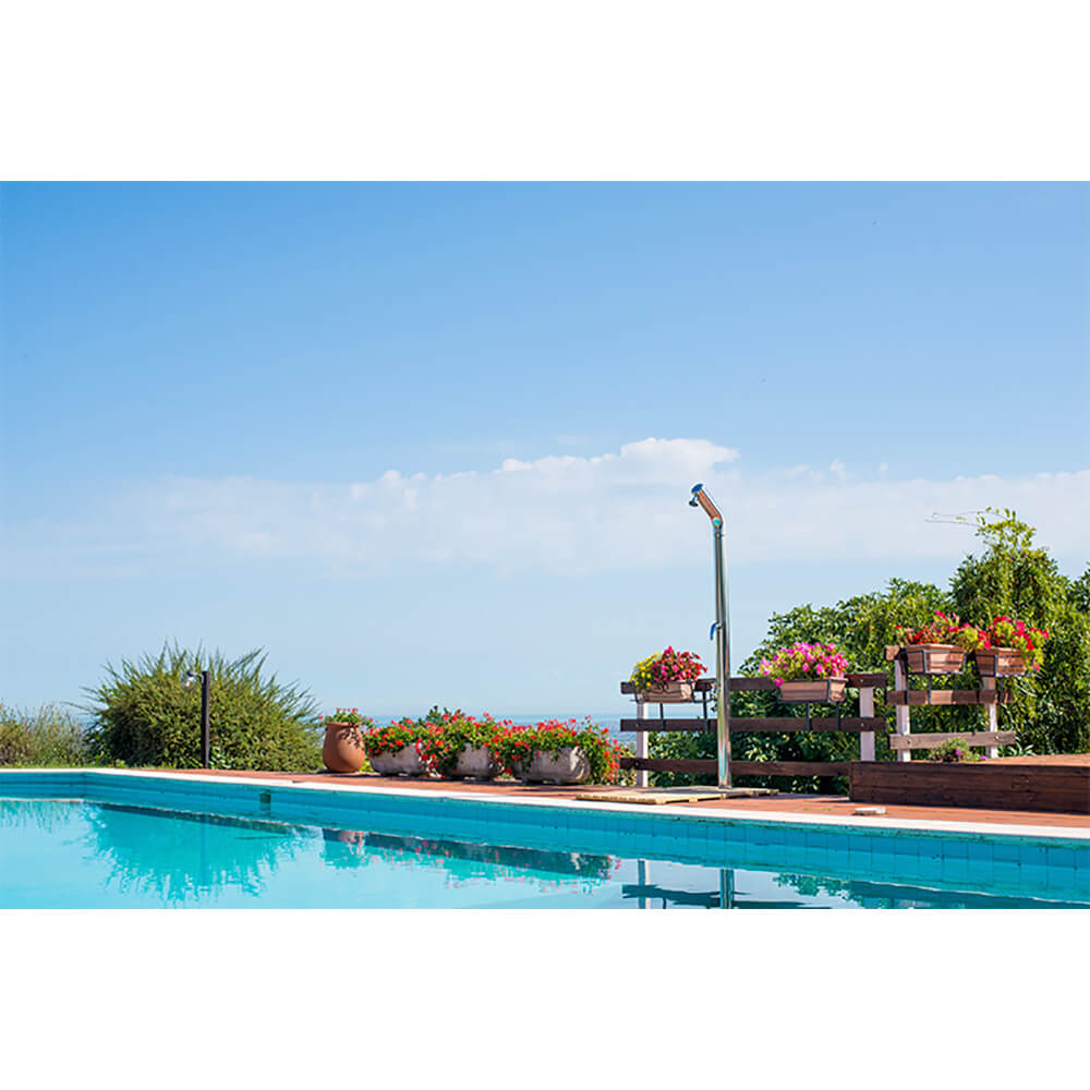 Traditionelle Außenpooldusche mit Mischer und Fußwascher 216,3x39,5xØ10cm ATI Docce UNI 1M Eloxierter Edelstahl