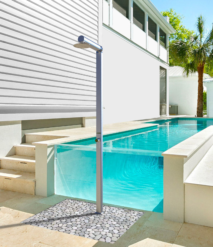Doccia da Giardino Miscelatore Caldo-Freddo e Soffione 250 mm H210 cm Arkema Quick Alluminio Satinato