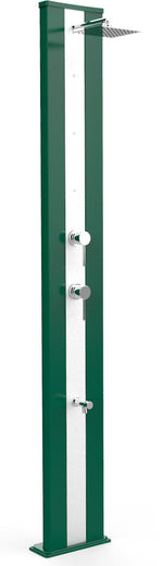 Doccia da Giardino Piscina Con Miscelatore Caldo-Freddo Nebulizzatore e Lavapiedi 229x14x34cm Arkema Dada S con Fascia Inox Verde scuro