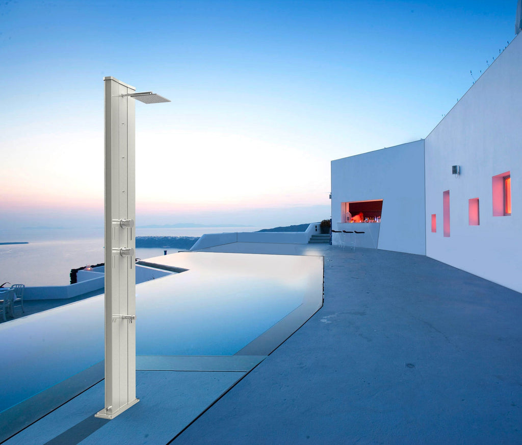 Doccia da Esterno Piscina Con Miscelatore Caldo-Freddo Nebulizzatore e Lavapiedi 230x28,5x34cm Arkema Dada S Perla Bianca