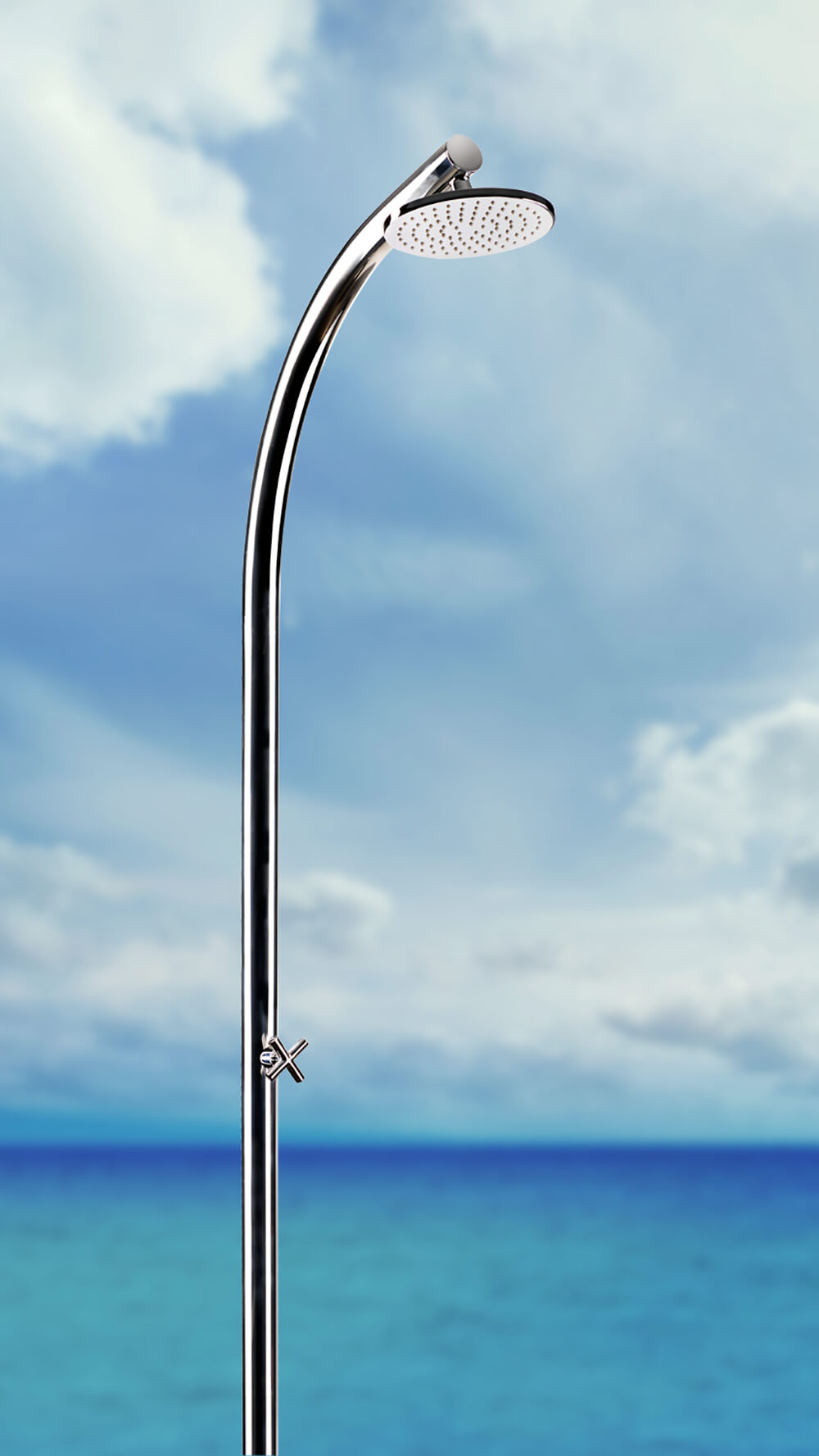 Die traditionelle Duschsäule bietet ein raffiniertes Design in ihren Rundungen.Der runde Abschnitt der Säule, die hohe und gerade erwähnte Krümmung vermitteln außergewöhnliche Feinheit. Es zeichnet sich durch minimale Linien aus, die es zu einem raffinierten Einrichtungszubehör für den Außenbereich machen. Hera erweist sich als ideale Lösung für den nautischen Bereich, für Unterkünfte und für Ihre Gartenmöbel
