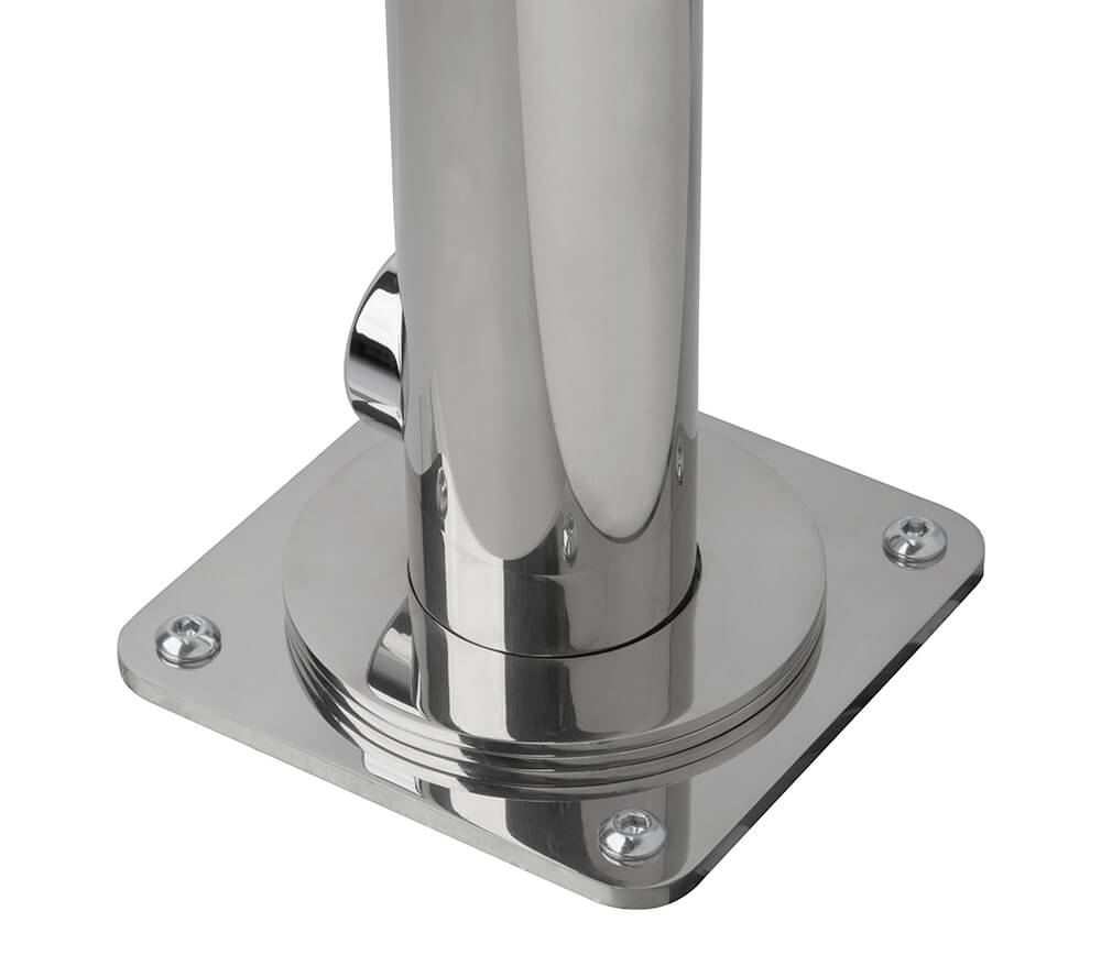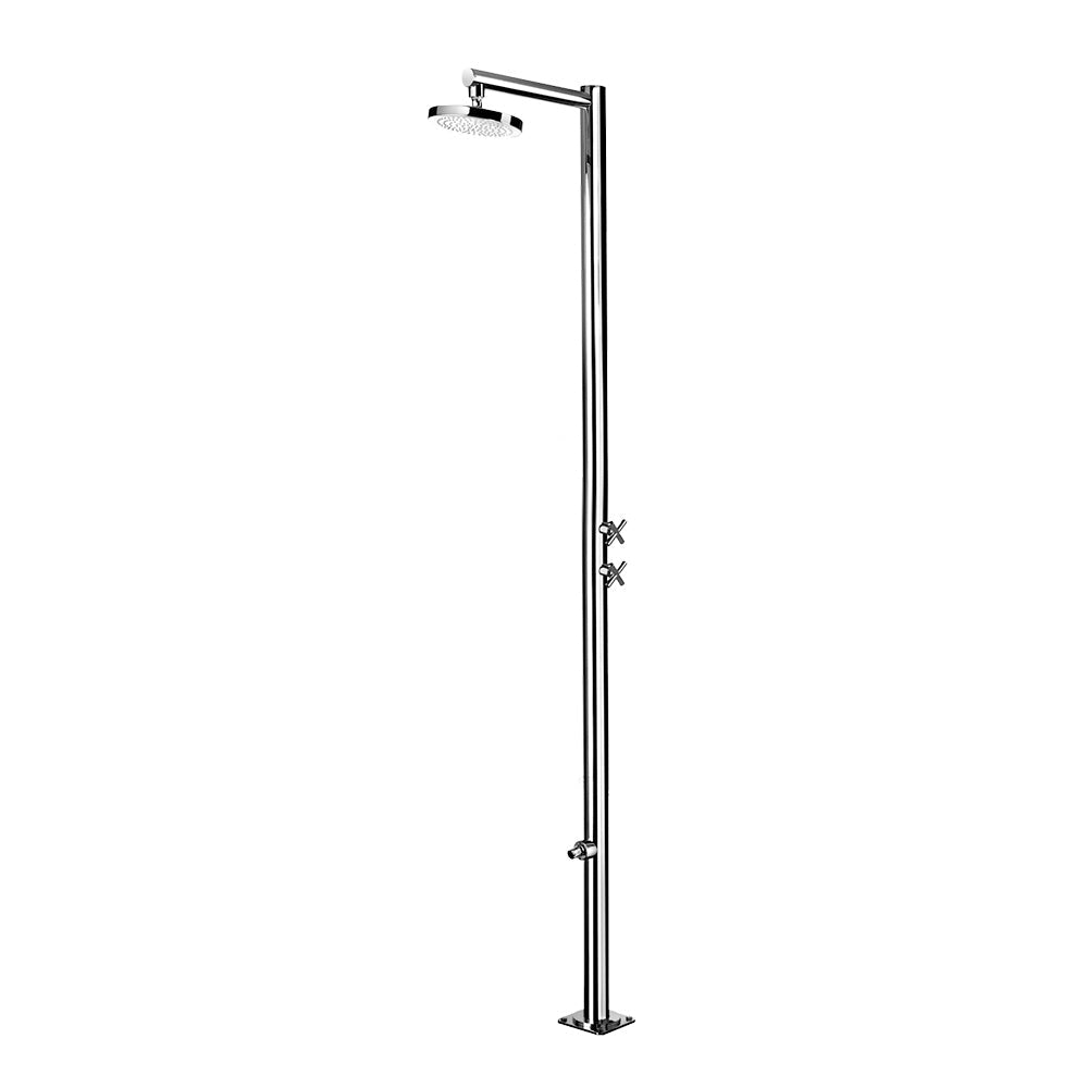 Venere Traditionelle Außendusche mit Säule und Sockel aus poliertem Edelstahl AISI 304 und mit Duschkopf aus Edelstahl AISI 304.