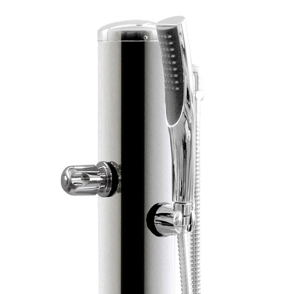 Außen-Pool-Dusche mit manuell schließendem Quick-Step-Hahn und mobiler Handbrause 127,5 x Ø 10 cm ATI Docce Flex R eloxierter Edelstahl