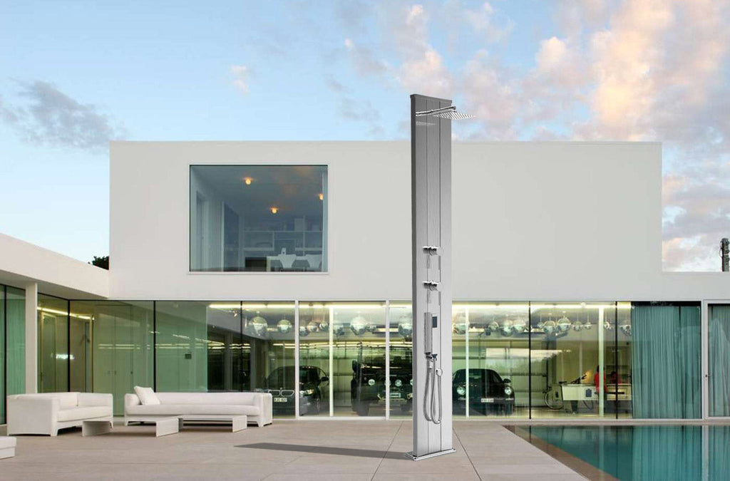 Doccia a Riscaldamento Solare da Giardino Piscina 40L Con Miscelatore Caldo-Freddo e Doccetta Mobile 229x14x34cm Arkema Dada S Fascia Inox Arancio