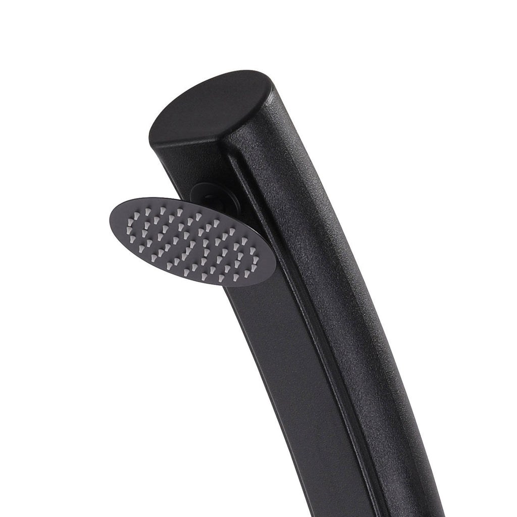 Die schwarze Farbe ist diejenige mit der größten Ausbeute an Sonnenwärme. Sie werden nicht die gleiche solarbeheizte Dusche finden! Großer Duschkopf mit Anti-Kalk-Düsen.
