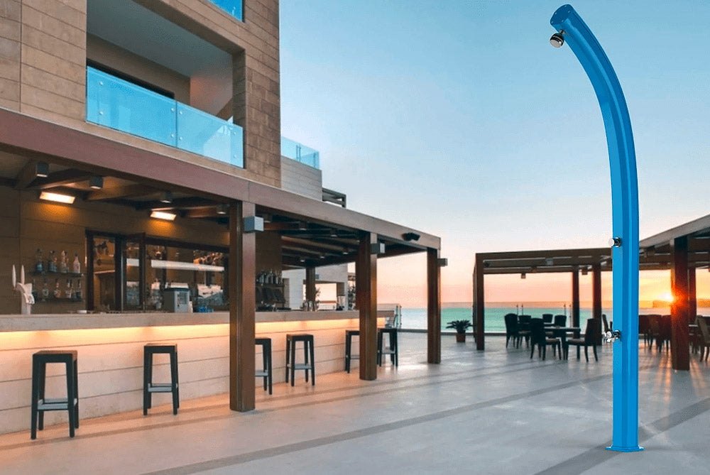 Doccia Solare da esterno dal design innovativo e originale, Jolly con lavapiedi della ARKEMA.