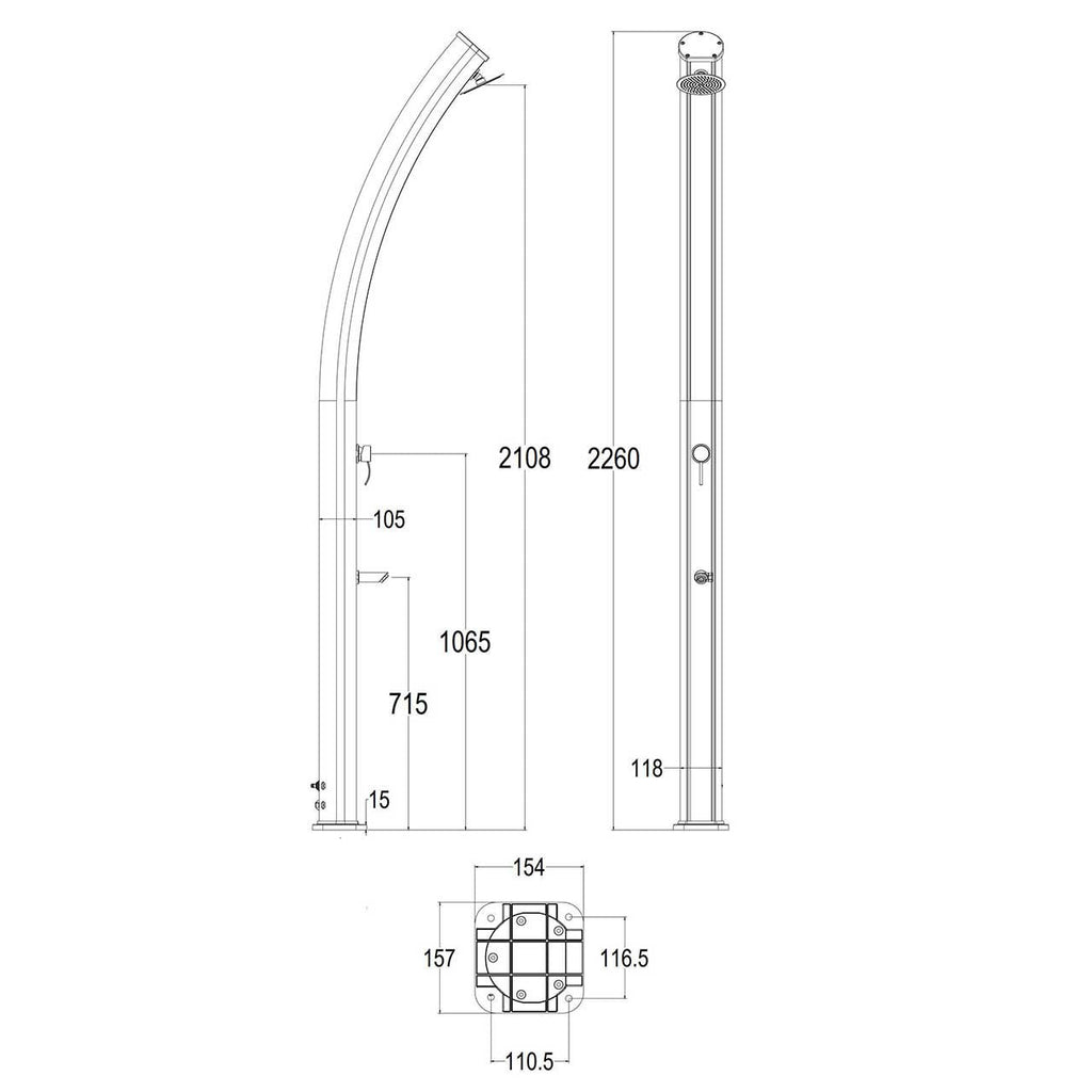 Solardusche für Garten und Pool Emi Black mit Aluminiumkörper. Rundkopfbrause 15 cm, Misch- und Fußwascharmatur, Tank 25 Liter. Höhe 226 cm Hervorragend geeignet für Pool, Garten, B&B, Hotels, Campingplätze und Outdoor-Aktivitäten.