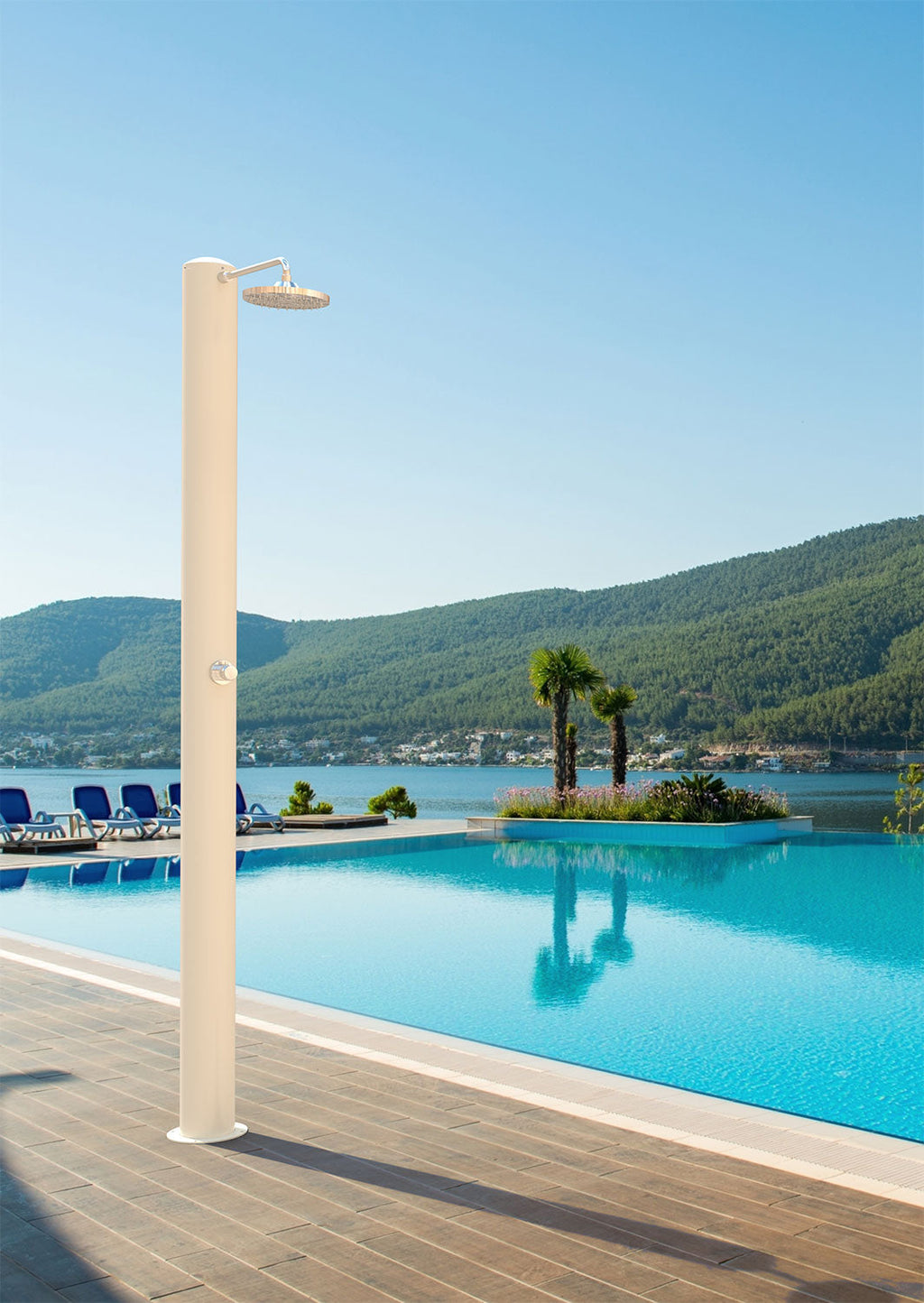 Doccia Solare da Giardino 28 L Soffione Eco Rain e Miscelatore Temporizzato Tevere TB Bianco Perla