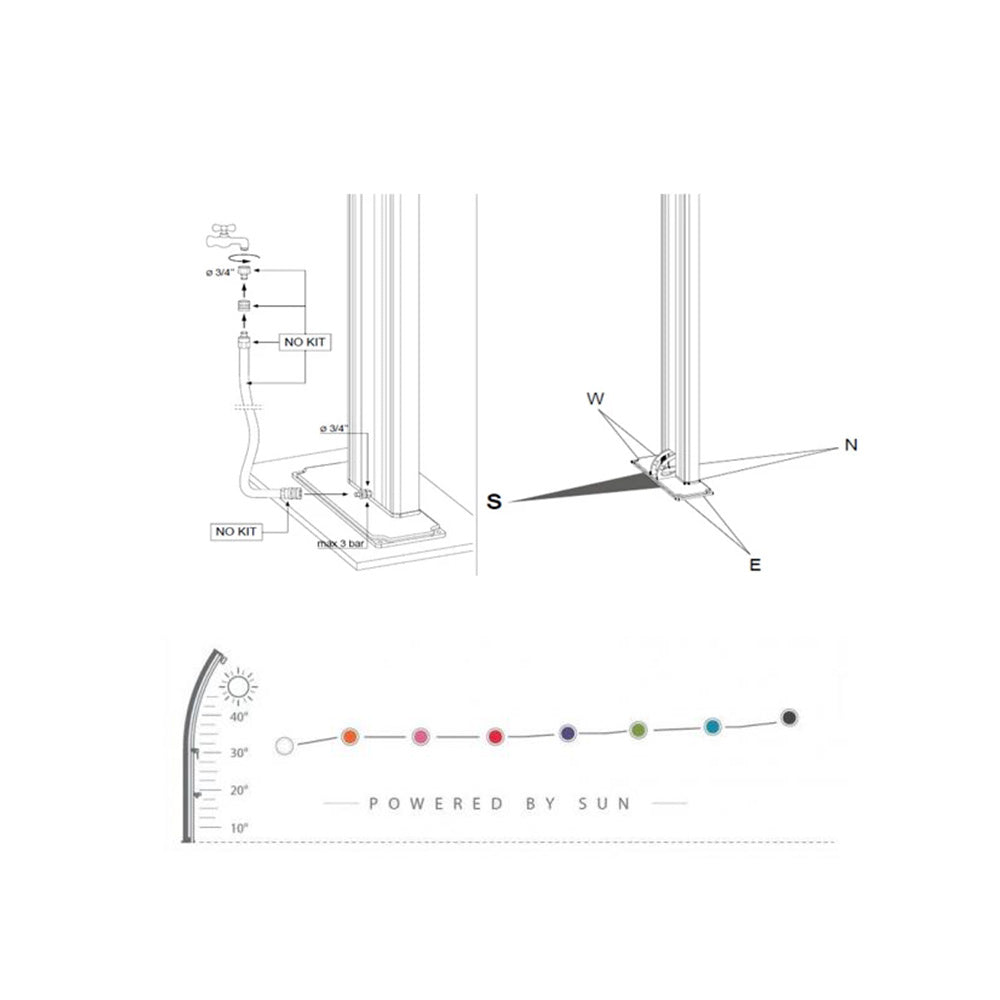 La doccia solare è progettata per essere utilizzata in condizioni di alimentazione idrica normale con una pressione inferiore a 3 bars (3 kg).