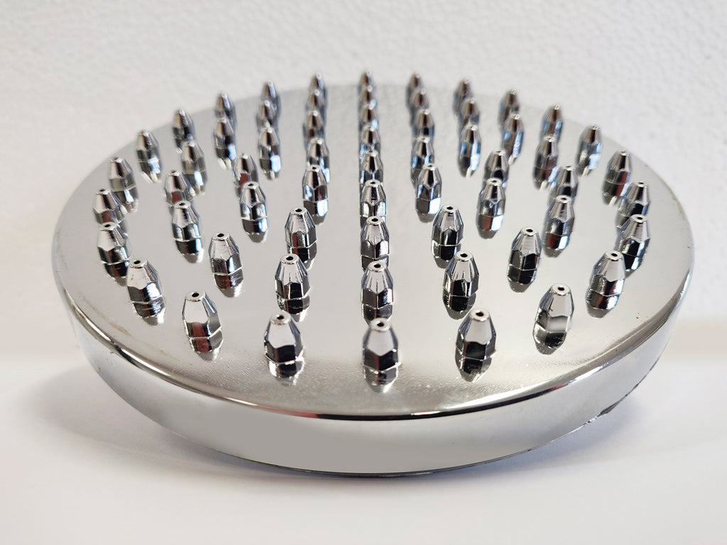 Soffione con ampio getto d'acqua a temperatura desiderata con posizione regolabile.