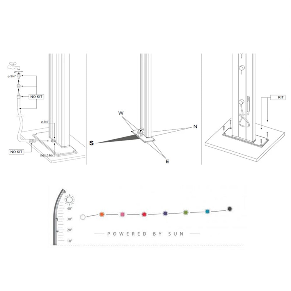 La doccia solare è progettata per essere utilizzata in condizioni di alimentazione idrica normale con una pressione inferiore a 3 bars (3 kg).