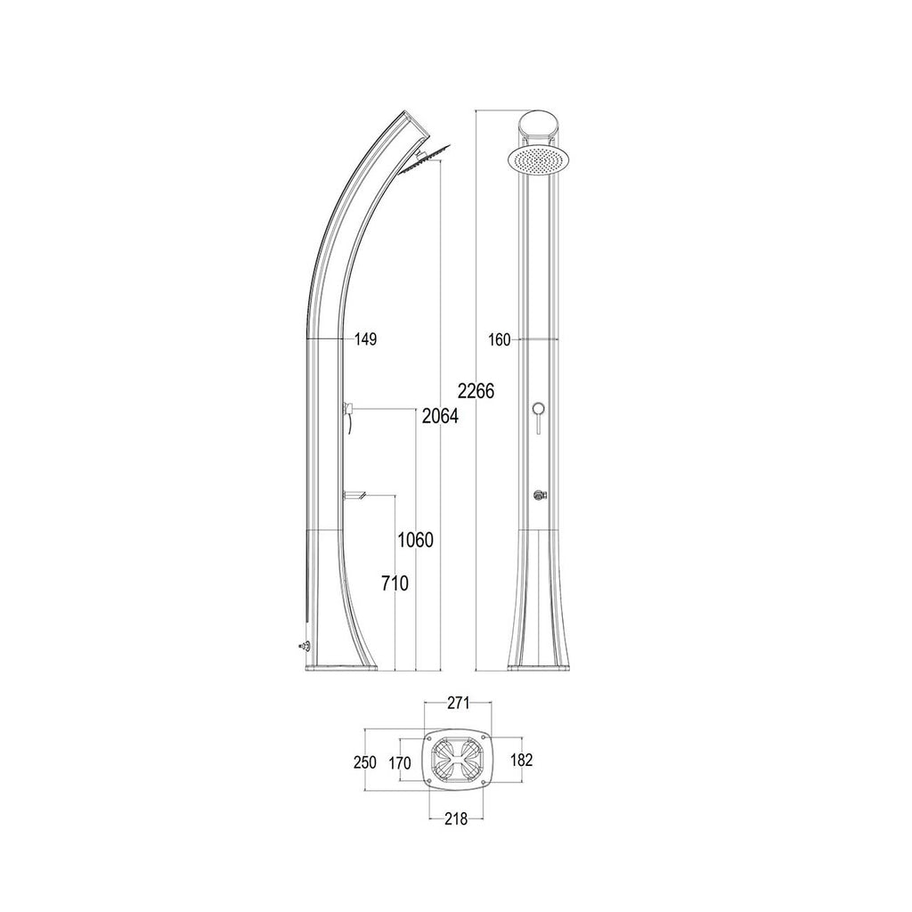 Doccia Solare da Giardino 40L Miscelatore e Lavapiedi 25x27xH226,6 cm Sined Sole XXL Nera/oro
