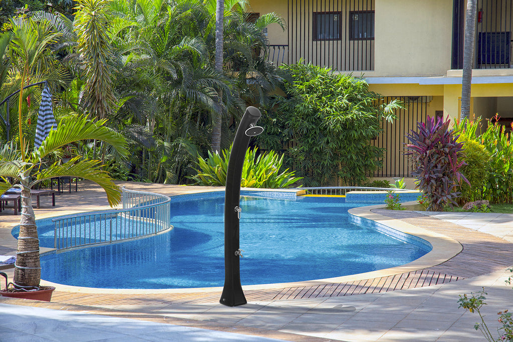 Diese Solardusche hat eine große Wasserreserve für maximalen Komfort. Ausgestattet mit einem Mixer und einem 44-Liter-Wassertank, der nur durch die Sonnenwärme erwärmt wird, ist er 100 % ökologisch. Das elegante Design und die geschwungene Form aus HD-Polyethylen integrieren sich perfekt in alle Außenbereiche. Ein einfacher Anschluss an eine Wasserversorgung reicht aus, um diese Solardusche mit Strom zu versorgen. Seine ausgestellte Basis sorgt für Stabilität und einfache Installation.