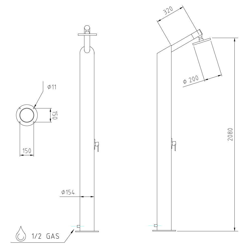 Diese Art von Außendusche wird direkt an die Hauptkaltwasserleitung angeschlossen, während der Warmwasserkreislauf an den durch Sonnenstrahlen erwärmten Tank angeschlossen ist.
