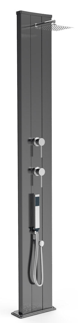 Doccia a Riscaldamento Solare da Esterno Giardino Piscina 40L Con Miscelatore Caldo-Freddo e Doccetta Mobile 229x14x34cm Arkema Dada S TOP LINE Perla Nera
