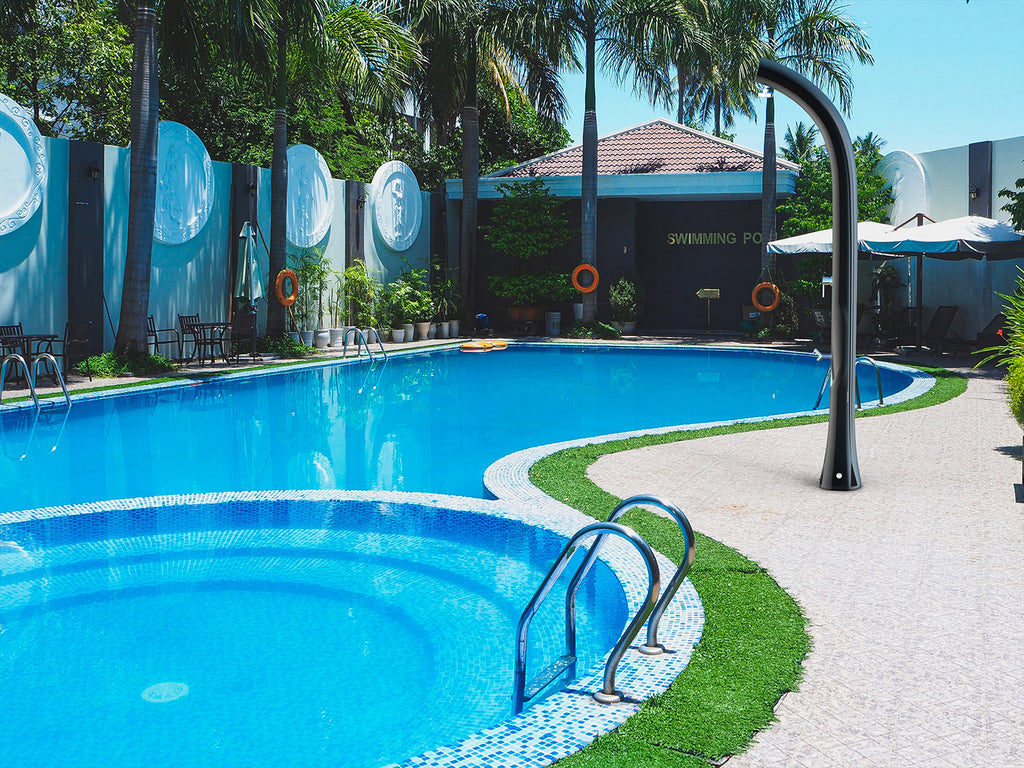 L'armonia e l'eleganza delle sue forme la rendono un complemento d'arredo adatto per qualsiasi ambientazione, sia solo per il giardino o se necessitate di una doccia per la vostra piscina. Ideale per strutture pubbliche e balneari.