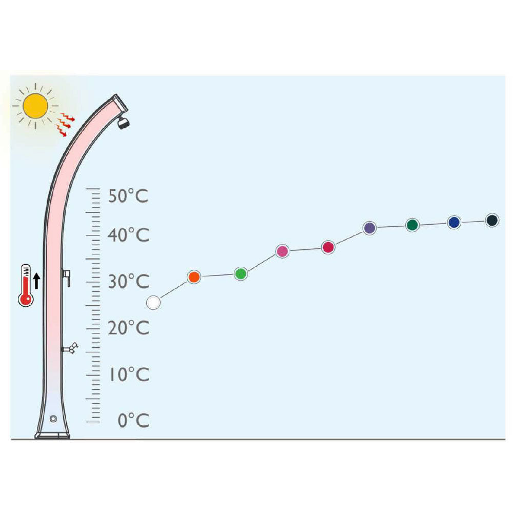Solarheizung Außendusche Garten Pool 40L mit Warm-Kalt Mischer Vernebler und Fußwascher 230x28,5x34cm Arkema Dada TOP LINE Verschiedene Farben
