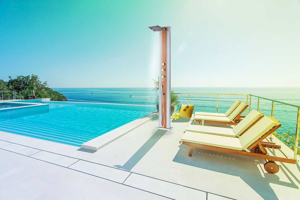 Diese Dusche kombiniert ökologische Solartechnologie und ist mit einem Tank mit einem Fassungsvermögen von 37 l ausgestattet, der mit einem Warmwasseranschluss ausgestattet ist, um eine temperaturgesteuerte Dusche unabhängig von der Anzahl der Benutzer zu gewährleisten. Beinhaltet eine Fußspülung, Ideal in der Nähe eines Schwimmbades. Es ist auch mit einem Warmwasseranschluss für das Hausnetz ausgestattet. So genießen Sie sowohl zu 100 % durch Sonnenenergie erwärmtes Warmwasser, als auch bei Bedarf Warmwasser aus Ihrer eigenen Wasserversorgung.