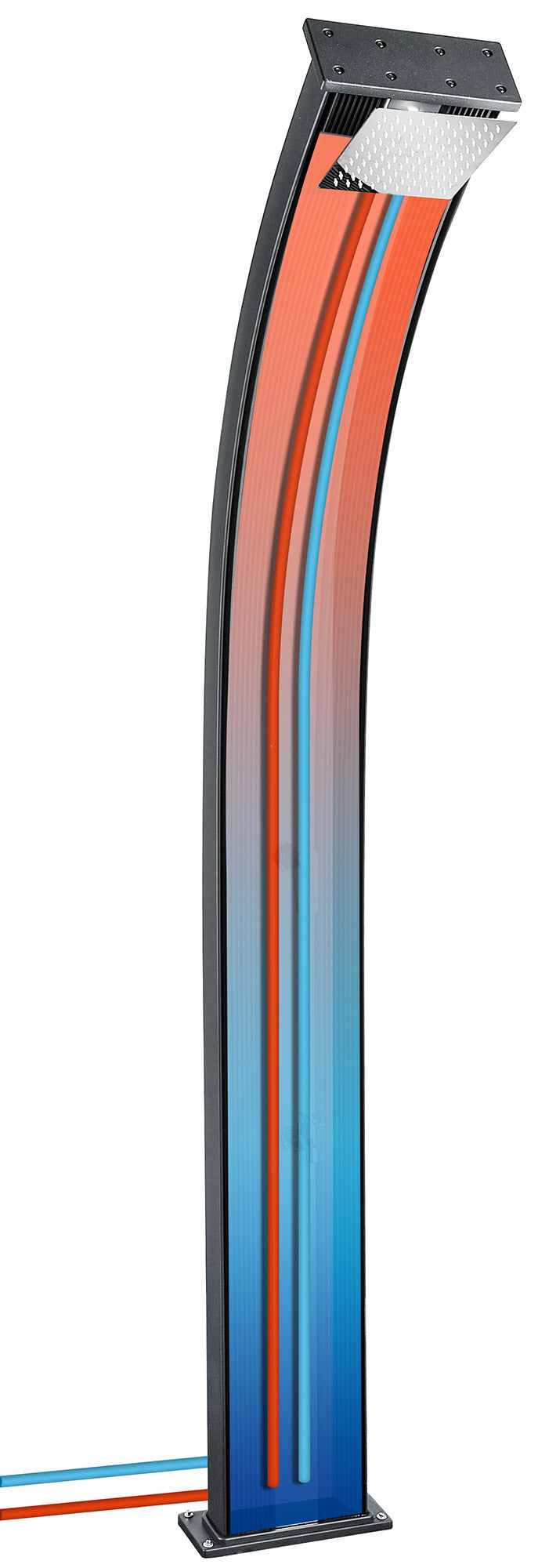 Solarbeheizte Hybriddusche für Garten-Schwimmbad 40L mit Warm-Kalt-Mischer und anthrazitfarbener Fußwaschbrause
