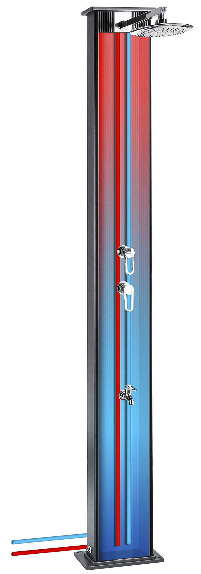 Hybrid Solar Gartendusche 40L Anthrazit/Aluminium Armatur und Fußwascher