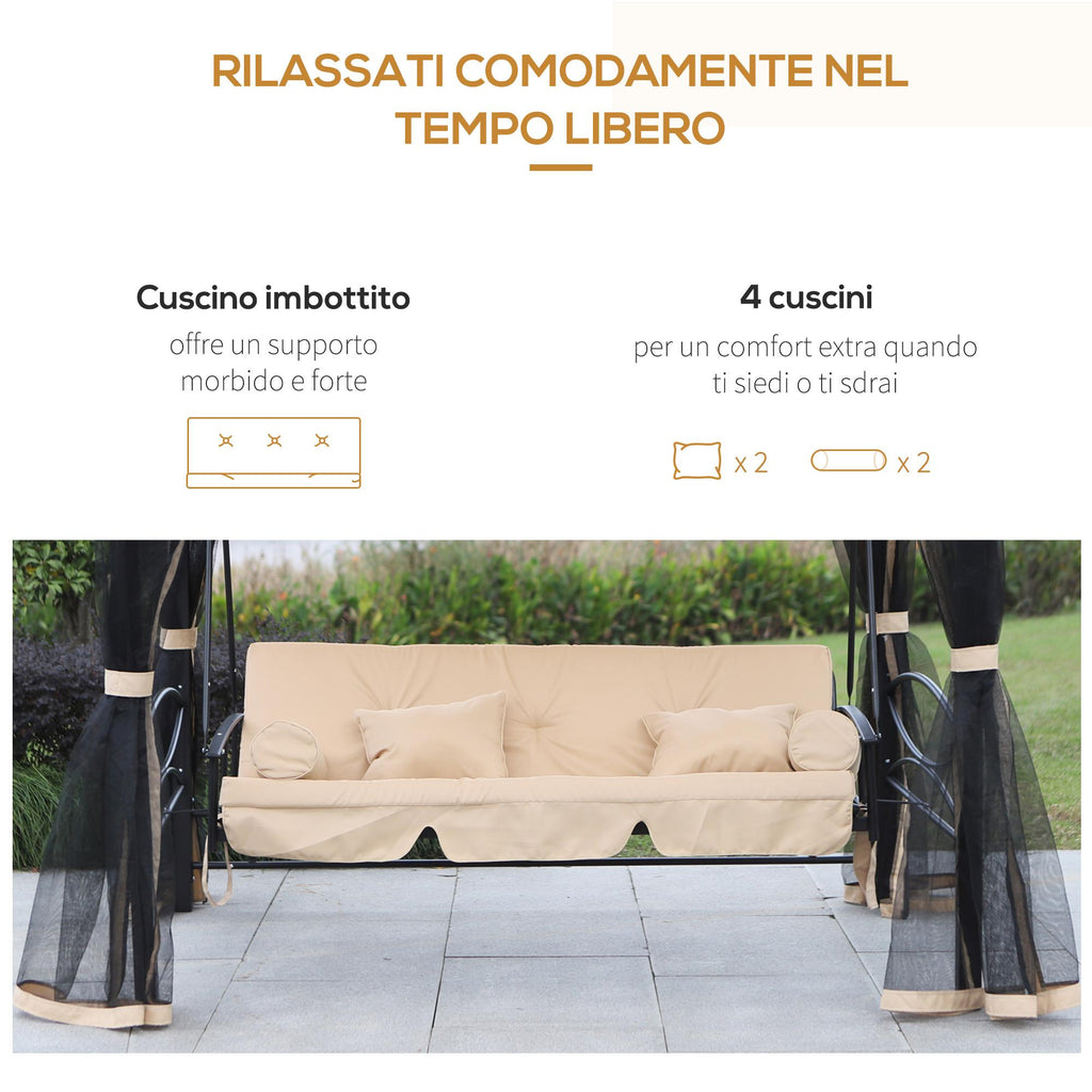 3-Sitzer-Schaukelstuhl 256 x 172 x 248 cm mit Gazebo-Abdeckung in Beige und Schwarz und Moskitonetz