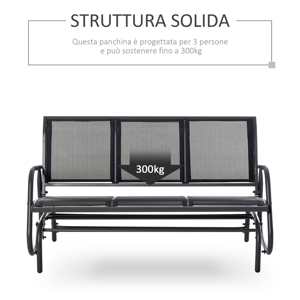 3-Sitzer-Gartenschaukel 151 x 75 x 85 cm aus Metall und schwarzem Textilene