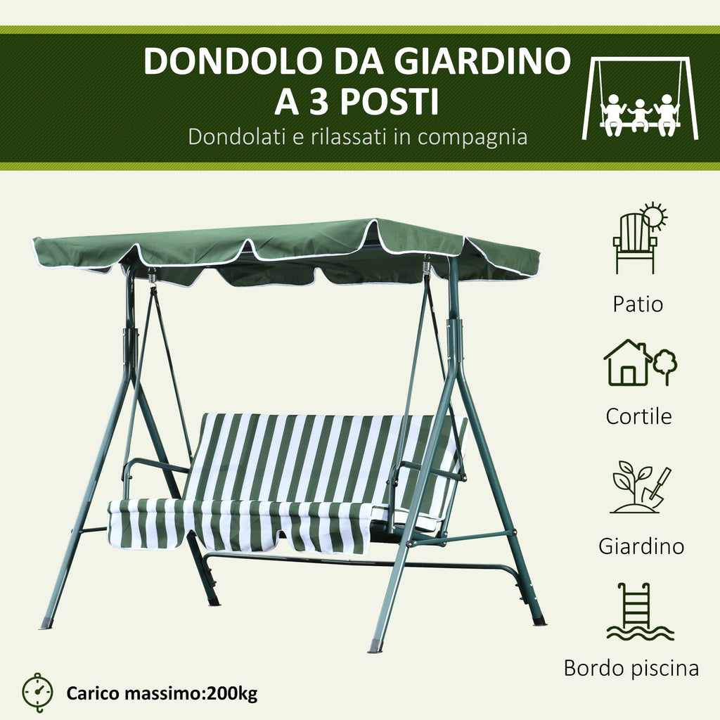 3-Sitzer-Gartenschaukel 170 x 110 x 152 cm, drehbar, grün und weiß