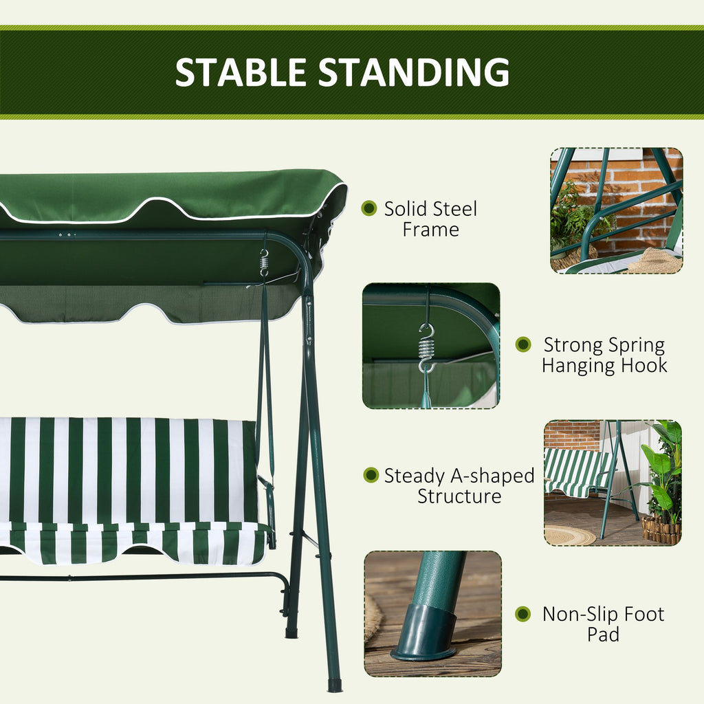 Dondolo 3 Posti da Giardino 172x110x153 cm in Acciaio a Strisce Bianco e Verde