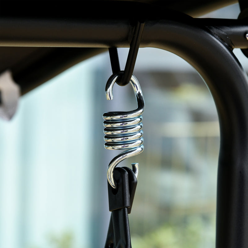 - SONNENVERDECK: Die Schaukel ist mit einem Sonnenverdeck ausgestattet, das in verschiedenen Winkeln geneigt werden kann, um Sie zu jeder Tageszeit vor der Sonne zu schützen.