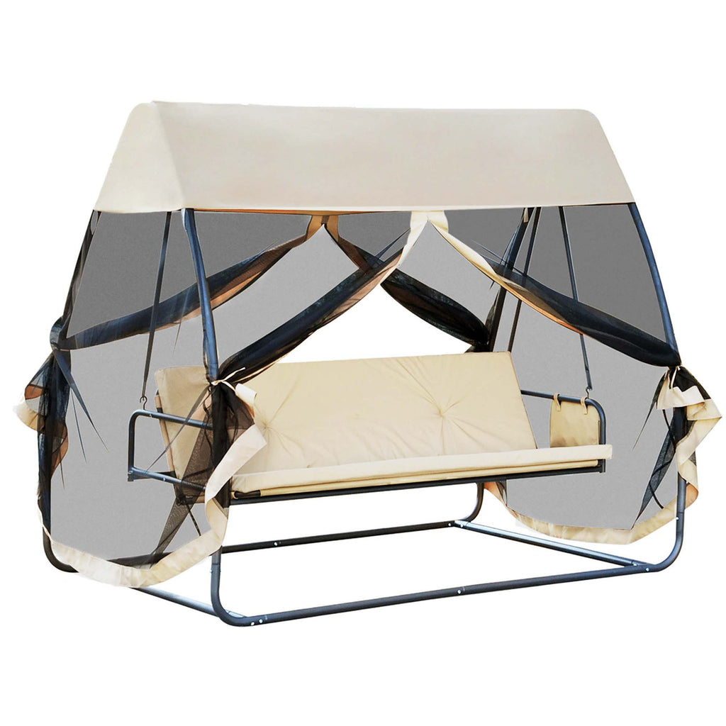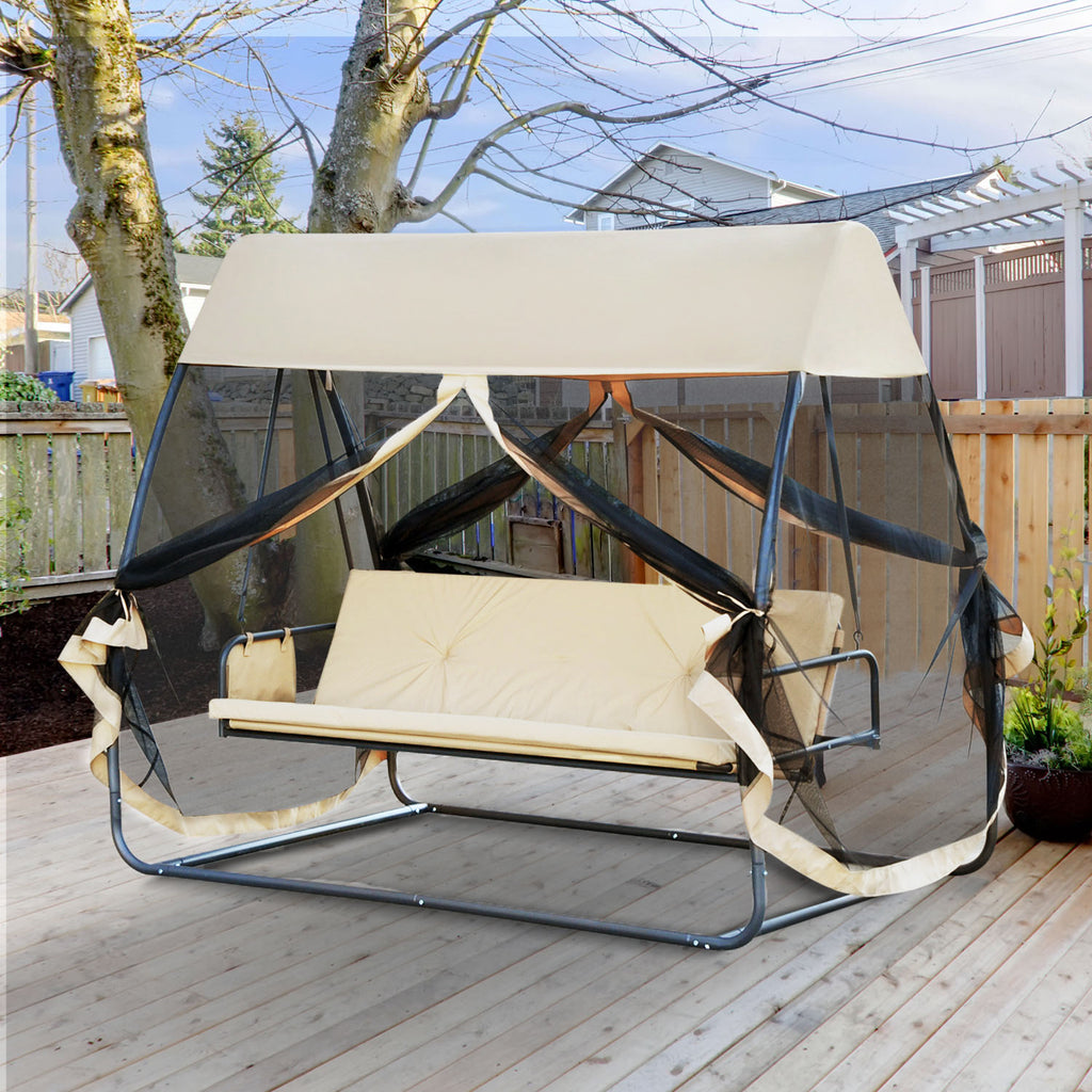 - 2-IN-1-DESIGN: Multifunktionale 3-Sitzer-Gartenschaukel, die in ein bequemes Bett umgewandelt werden kann.