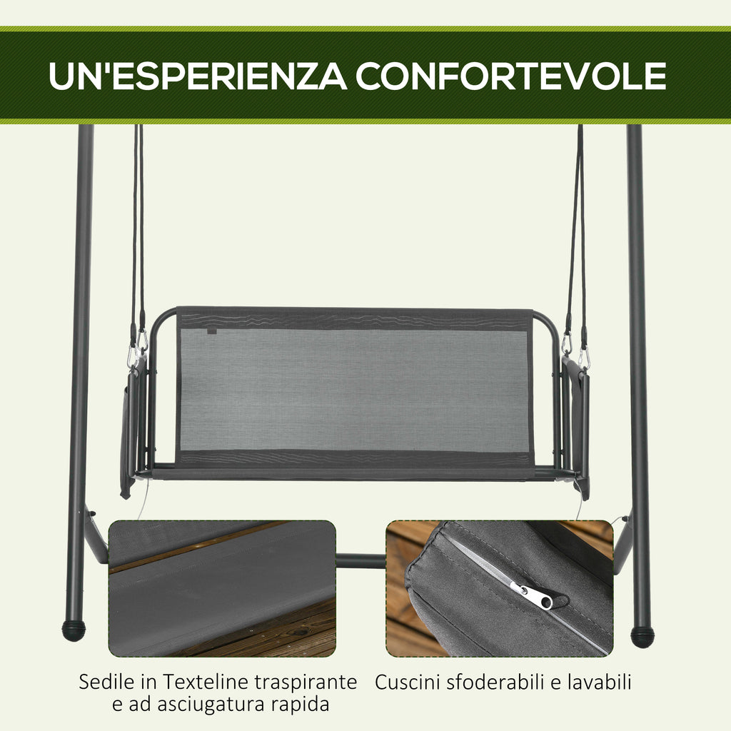 Dondolo da Giardino 2 Posti con Cuscini e Tasche 168x117x181 cm in Acciaio e Textilene Grigio Scuro