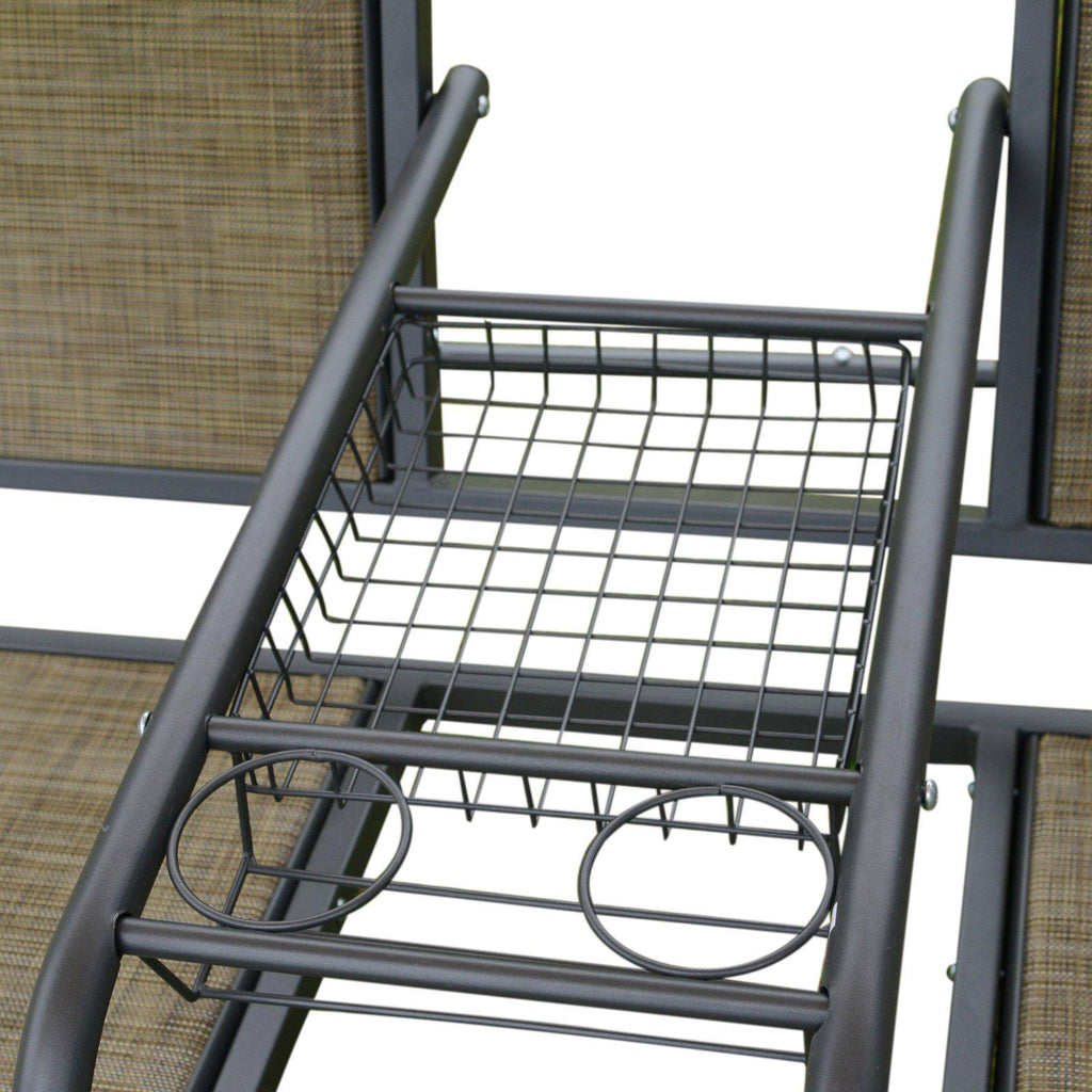 2-Sitzer-Gartenschaukel aus Stahl mit braunem und schwarzem Sonnendach
