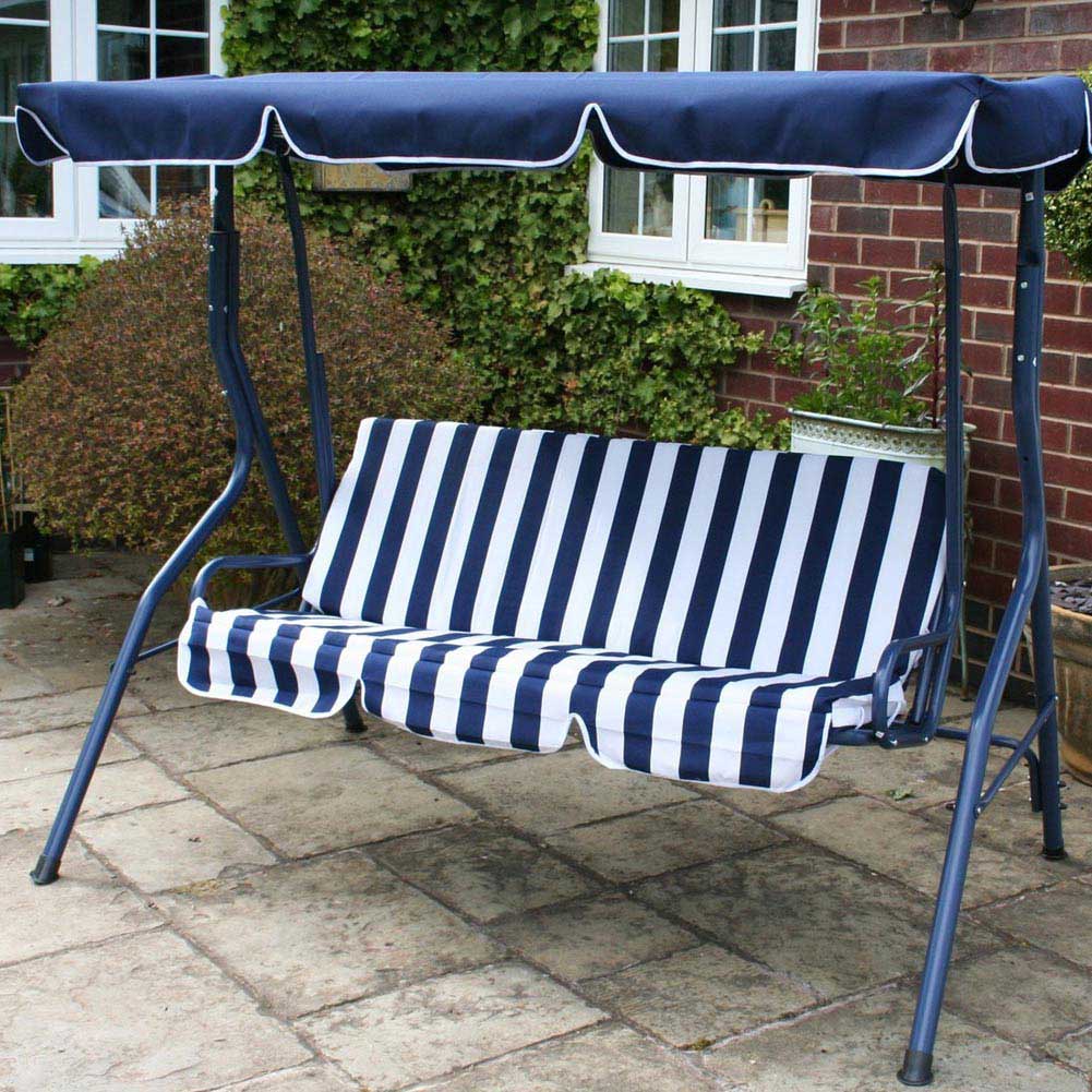 1 x Dondolo da Giardino 3 Posti Altalena Esterno Acciaio con Tettuccio BLU e Bianco