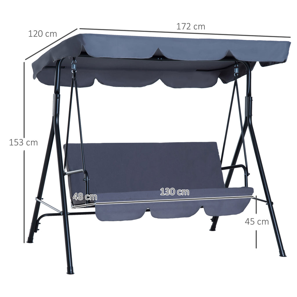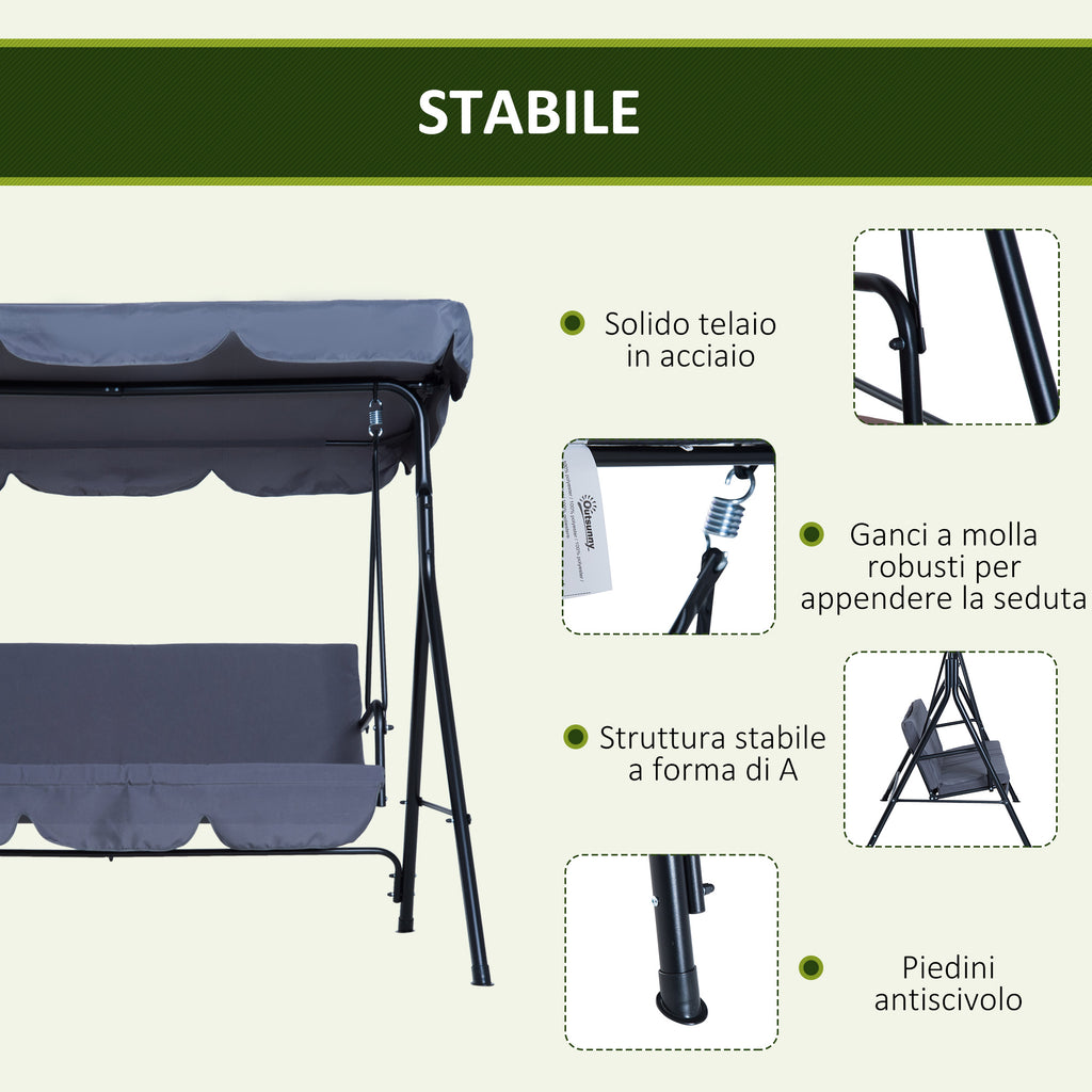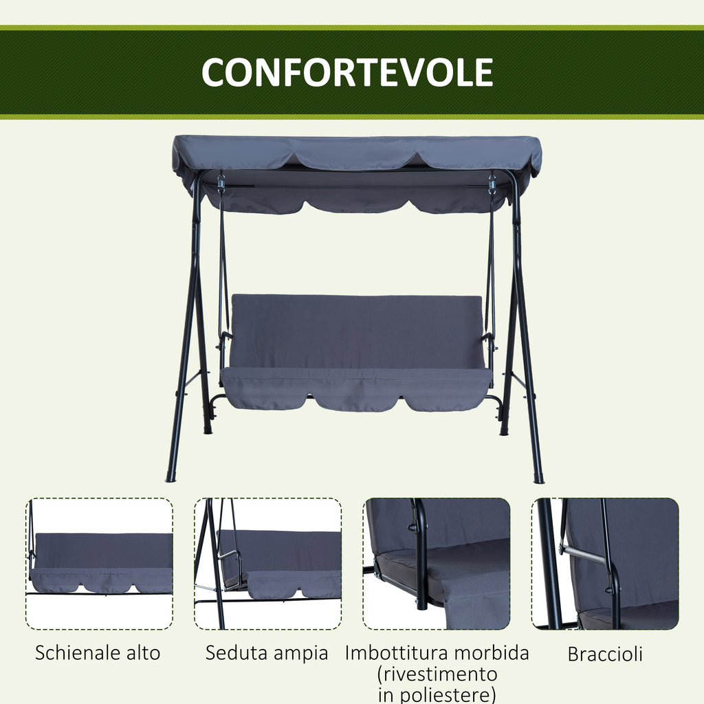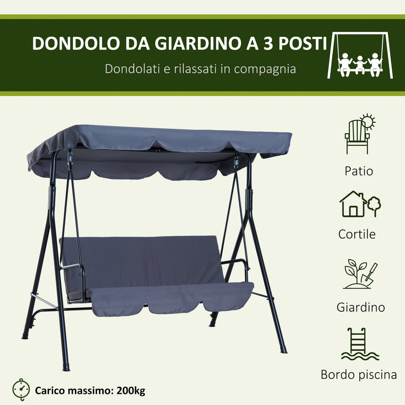 3-Sitzer-Gartenschaukel mit neigbarem Sonnendach aus grauem Polyestergewebe