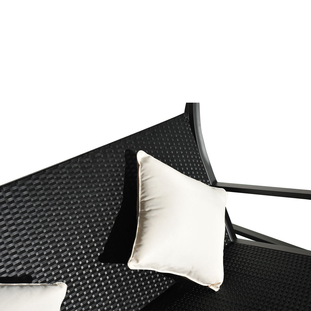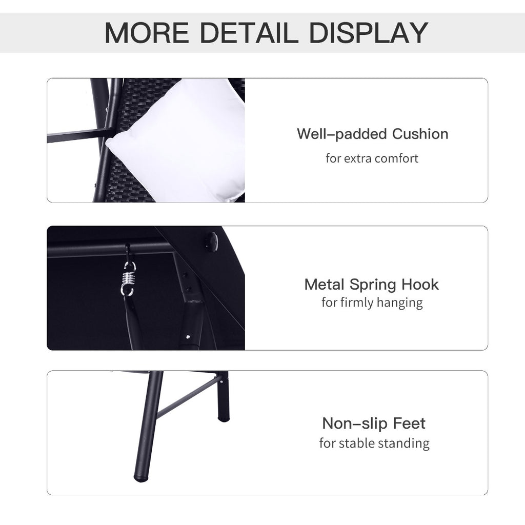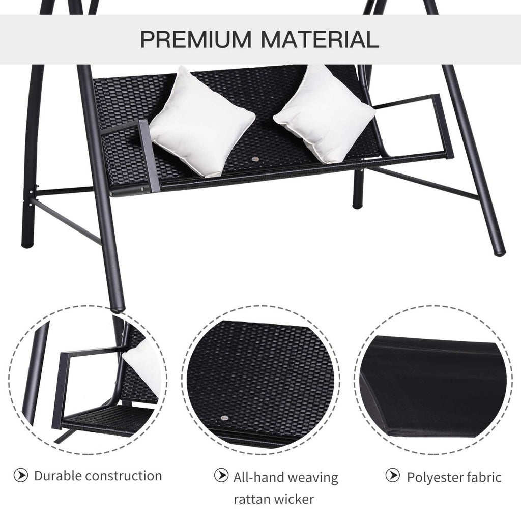 3-Sitzer-Gartenschaukel aus Eisen und Rattan mit Kissen und schwarzem Sonnendach