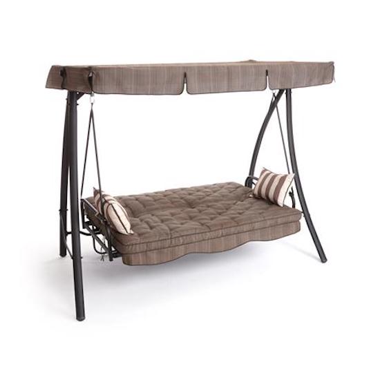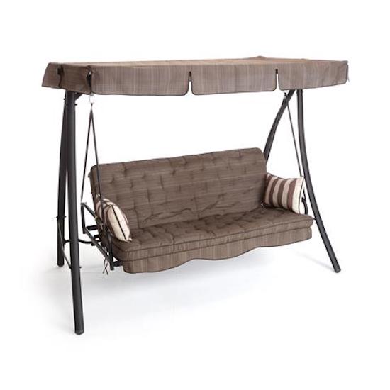 Taddei Panama Braun und Beige, Eisen und Polyester, Gartenschaukel mit 3 Sitzen