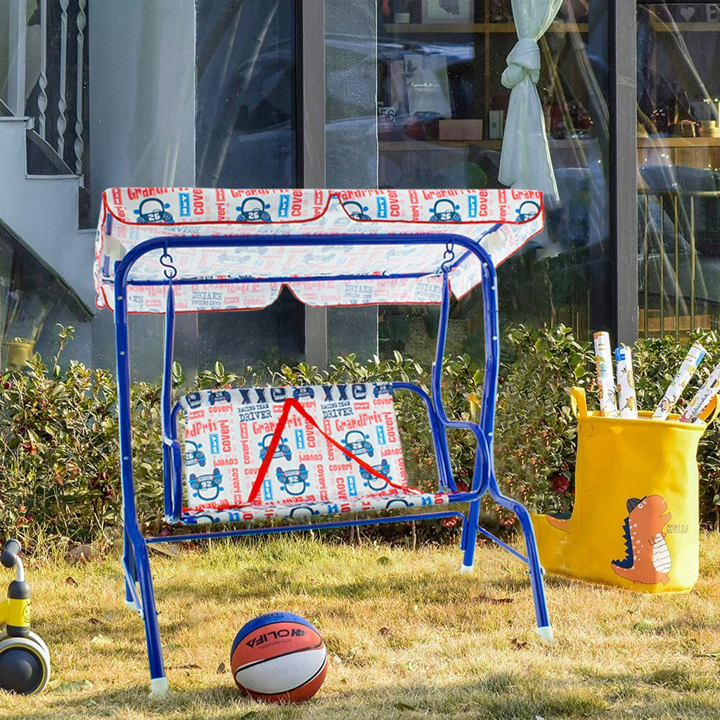 Die Schaukel verfügt über Sicherheitsgurte für einen stabilen und sicheren Sitz. Er ist für Kinder ab 3 Jahren geeignet und hat eine maximale Belastbarkeit von 70kg. Der Stoff ist wasserdicht, mit Drucken und Schriftzügen in Blau oder Pink verziert, je nach gewählter Farbe. Die Schaukel ist mit einem verstellbaren Sonnenschutz mit UV-Schutz ausgestattet, der Schatten spendet und Ihre Kinder während der Spielstunden vor Sonnenstrahlen schützt.