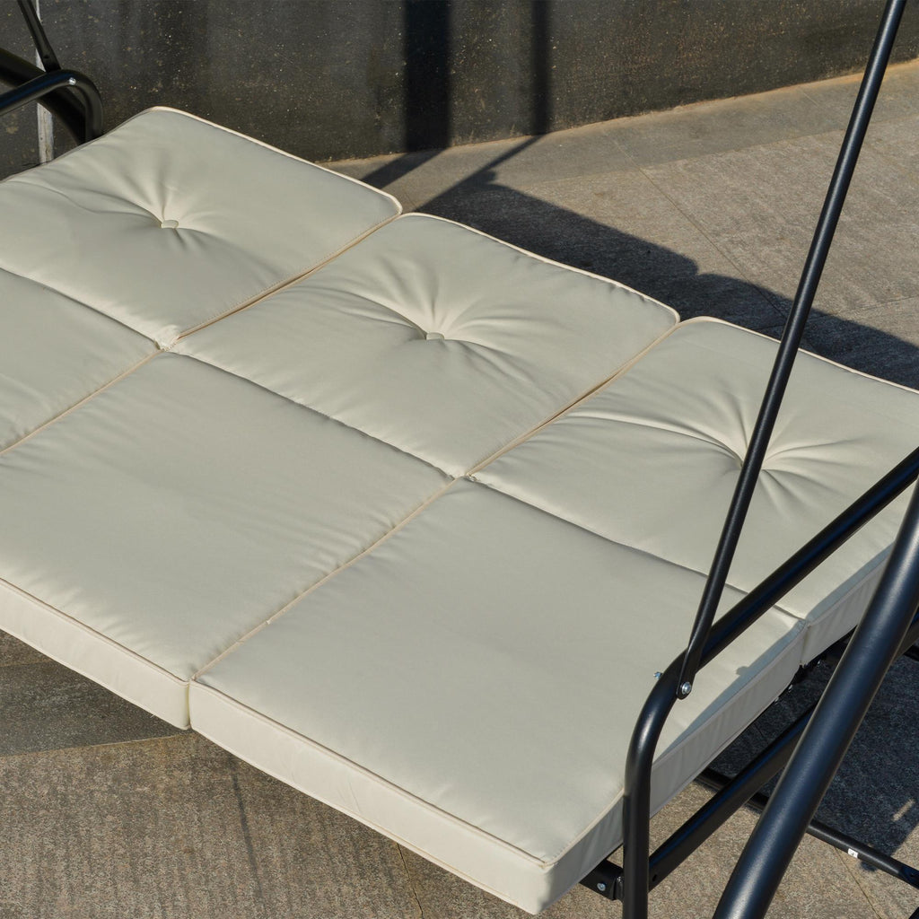 Schaukelbett 3 Sitze 195 x 117 x 174 cm aus schwarzem und beigem Metall und Polyester