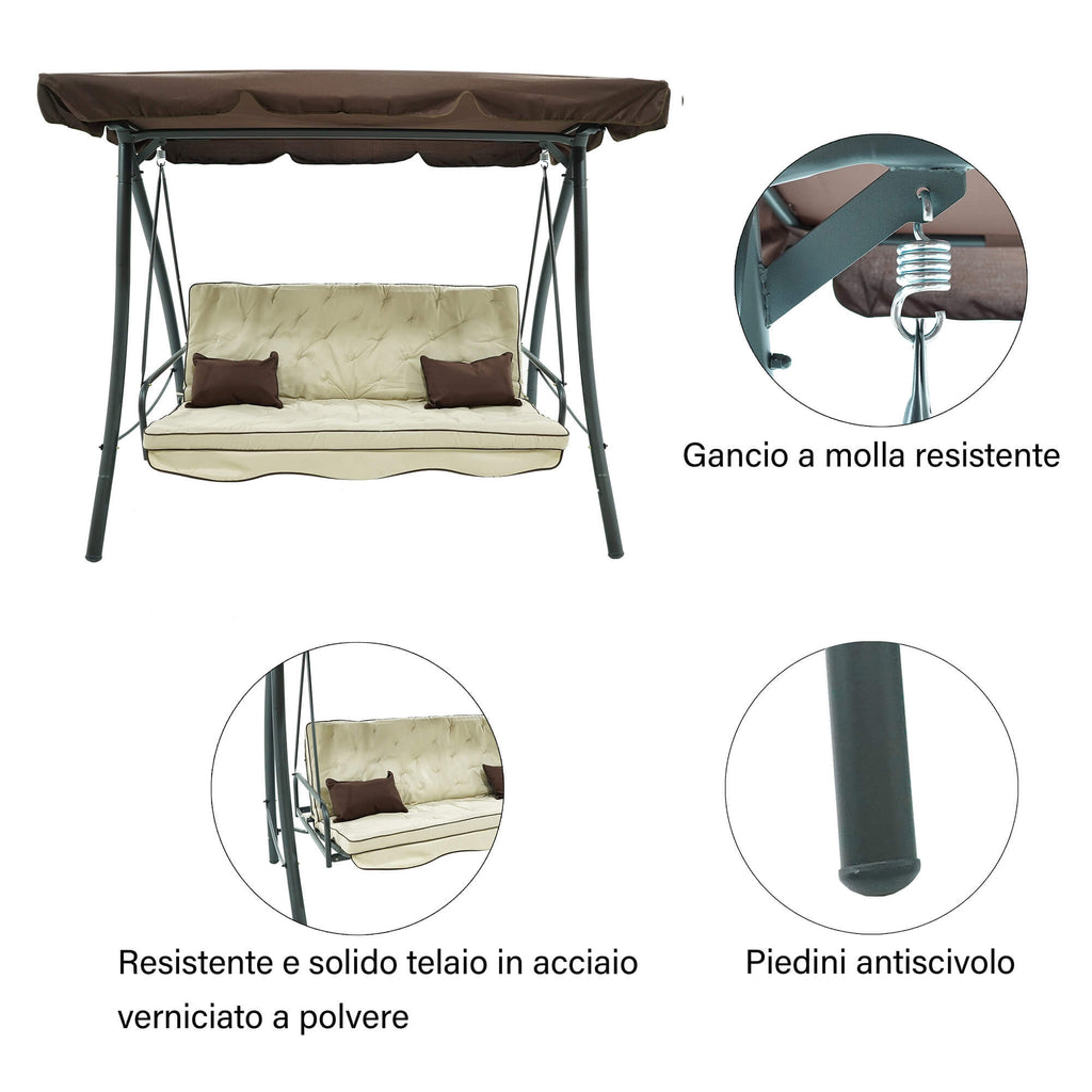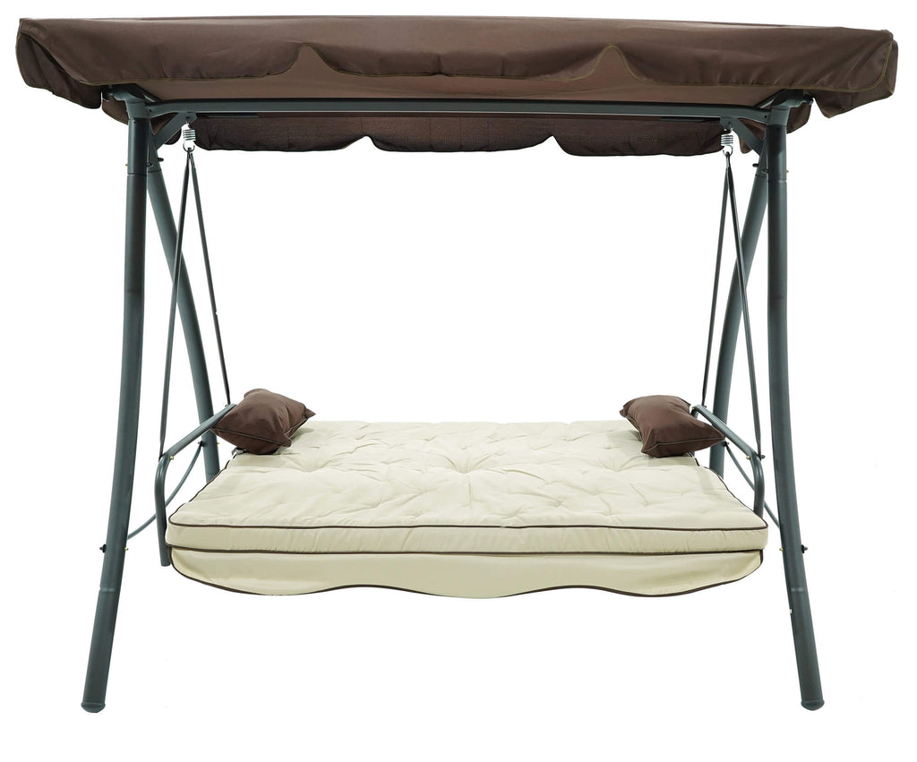 Schaukelbett 3 Sitze 202x115x170 cm in Stahl und Polyester Andromedabraun und Ecru