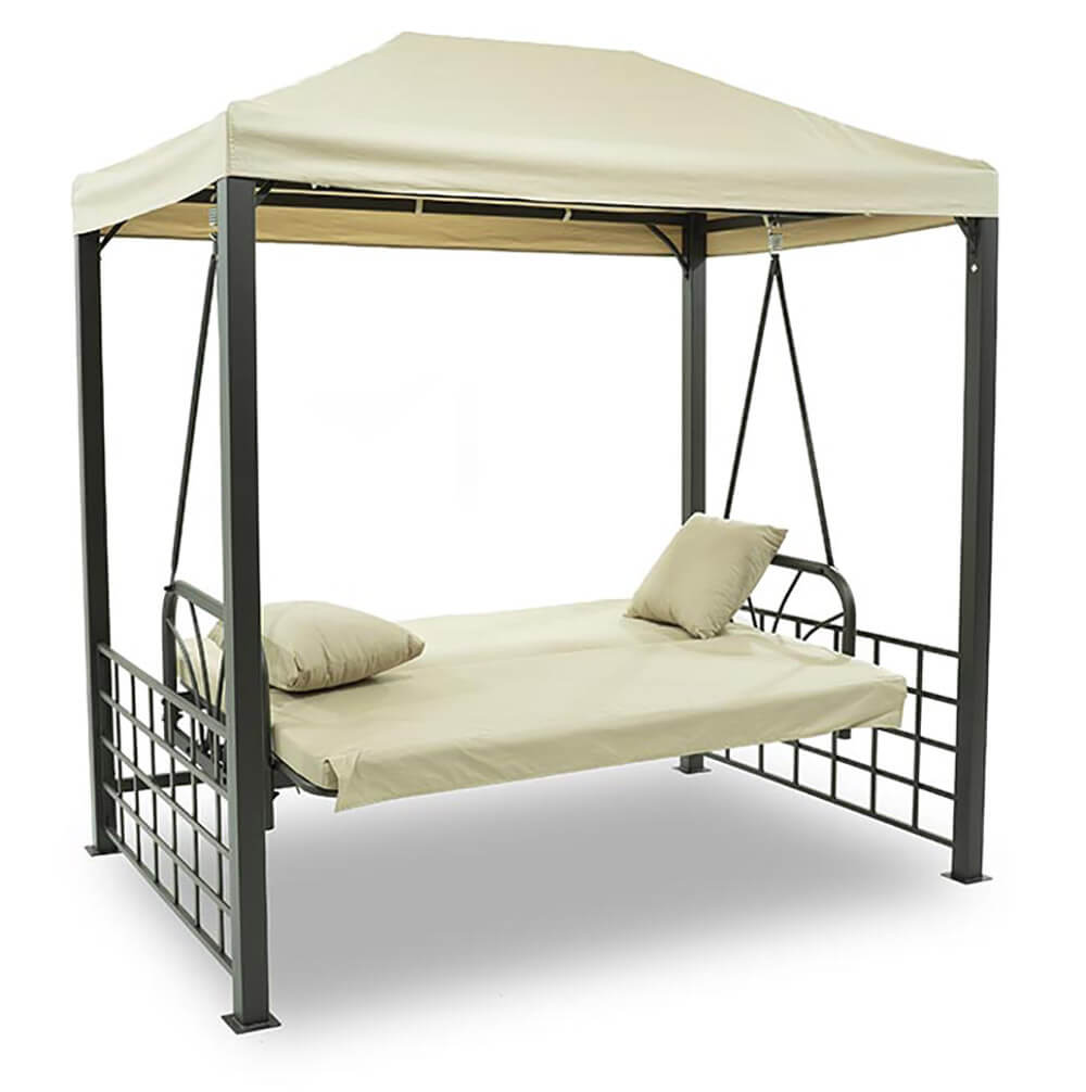 3-Sitzer-Schaukelbett mit beigefarbener Gazebo-Abdeckung