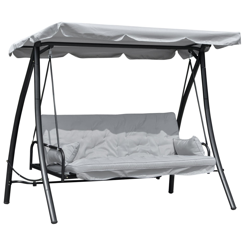 Garten-Schaukelbett 3 Sitze 209x114x170 cm in Metall und grauem Polyester