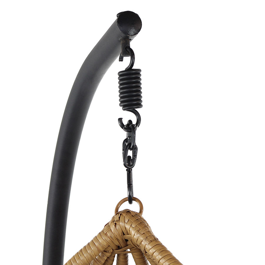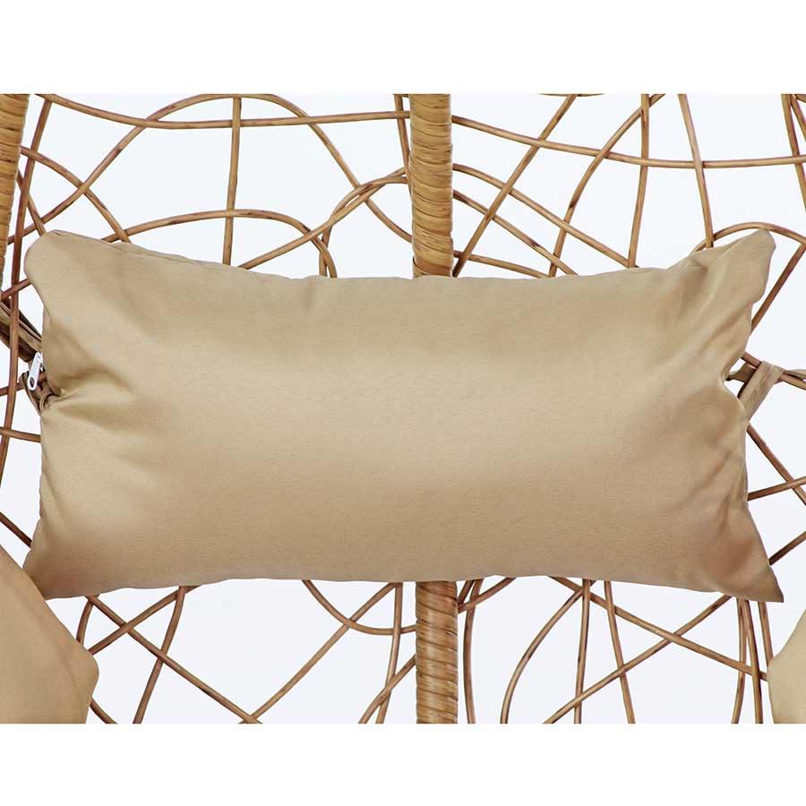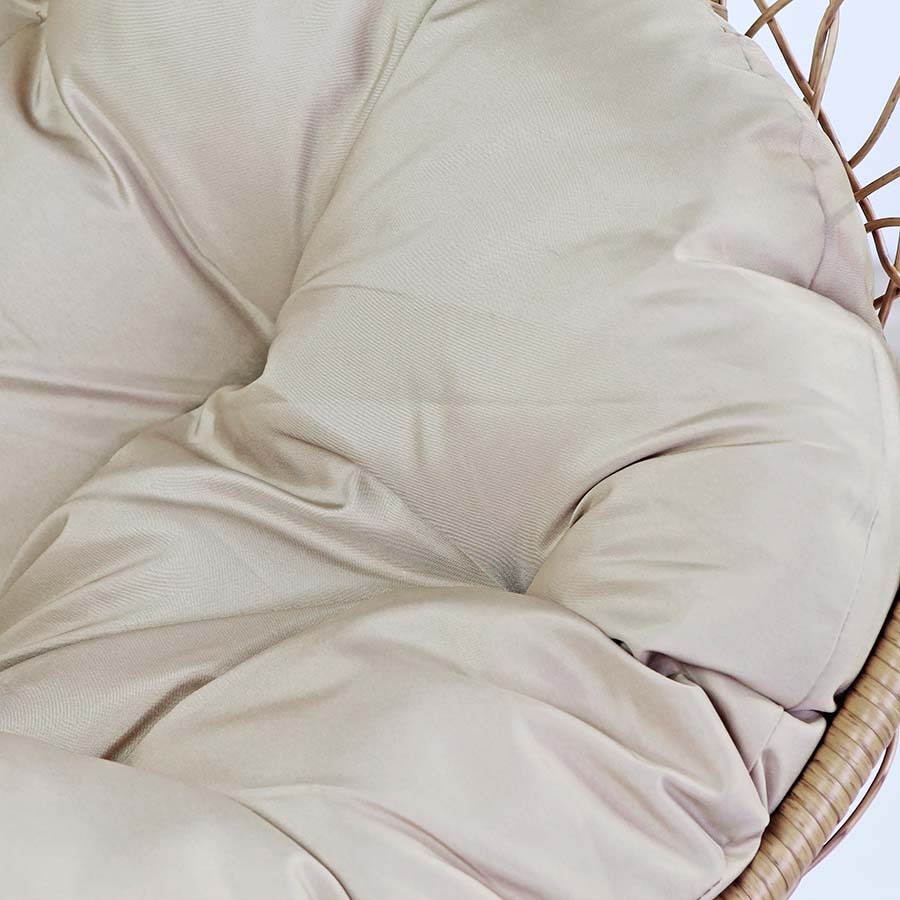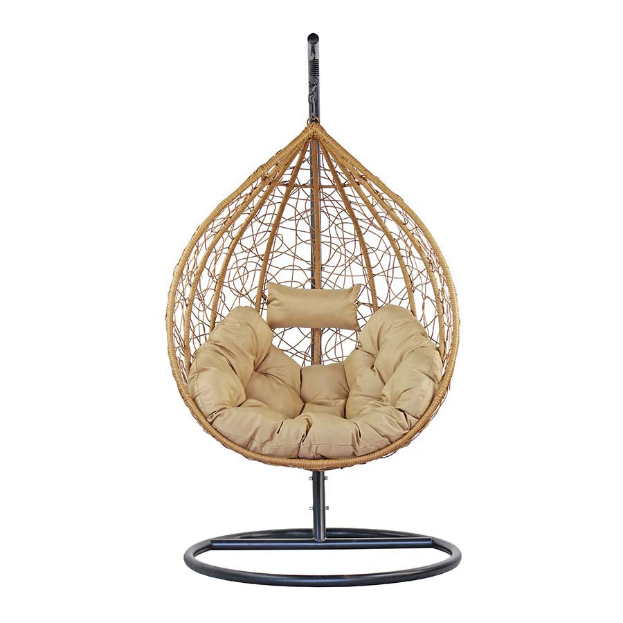 La poltrona uovo sospesa da giardino è, da sola, in grado di rendere il tuo outdoor un ambiente ricercato, elegante ed accogliente, perfetto per rendere veramente speciali i momenti di relax e allegria da passare all'aria aperta. La poltrona sospesa è composta da una base con struttura in ferro, con 108 cm di diametro e ben 198 cm di altezza; su questa struttura si posiziona poi in sospensione la poltrona ovetto, con seduta di 104x73 cm e struttura in una fibra sintentica color natural esteticamente di grande impatto. Il comfort della poltrona appesa è garantito dal set di cuscini da esterno in poliestere. Oltre che essere di grande impatto visivo, questa sedia sospesa da giardino, è quindi anche comoda e rilassante, considerando anche il suo oscillare che la fa sembrare una vera poltrona a dondolo sospesa. La bella stagione può essere, ancora di più, costellata di momenti da sogno, regalando al tuo set da giardino questo mobile da esterno elegante e comodo. Il colore naturale della fibra permette alla poltrona appesa di essere perfettamente inseribile in qualsiasi tipo di spazio outdoor e di essere accostata ad ogni stile di arredo giardino eventualmente già presente.