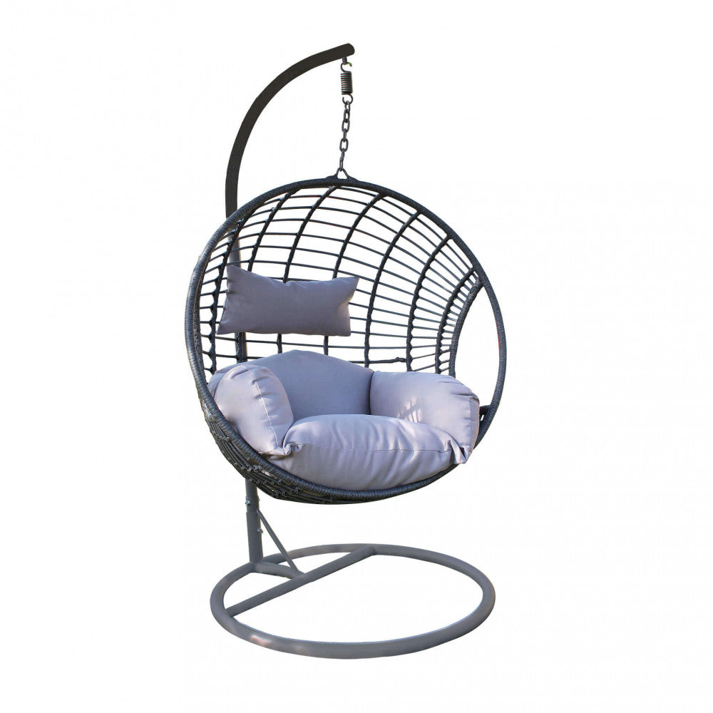 Hängende Gartenschaukel Elba aus grauem Korbgeflecht