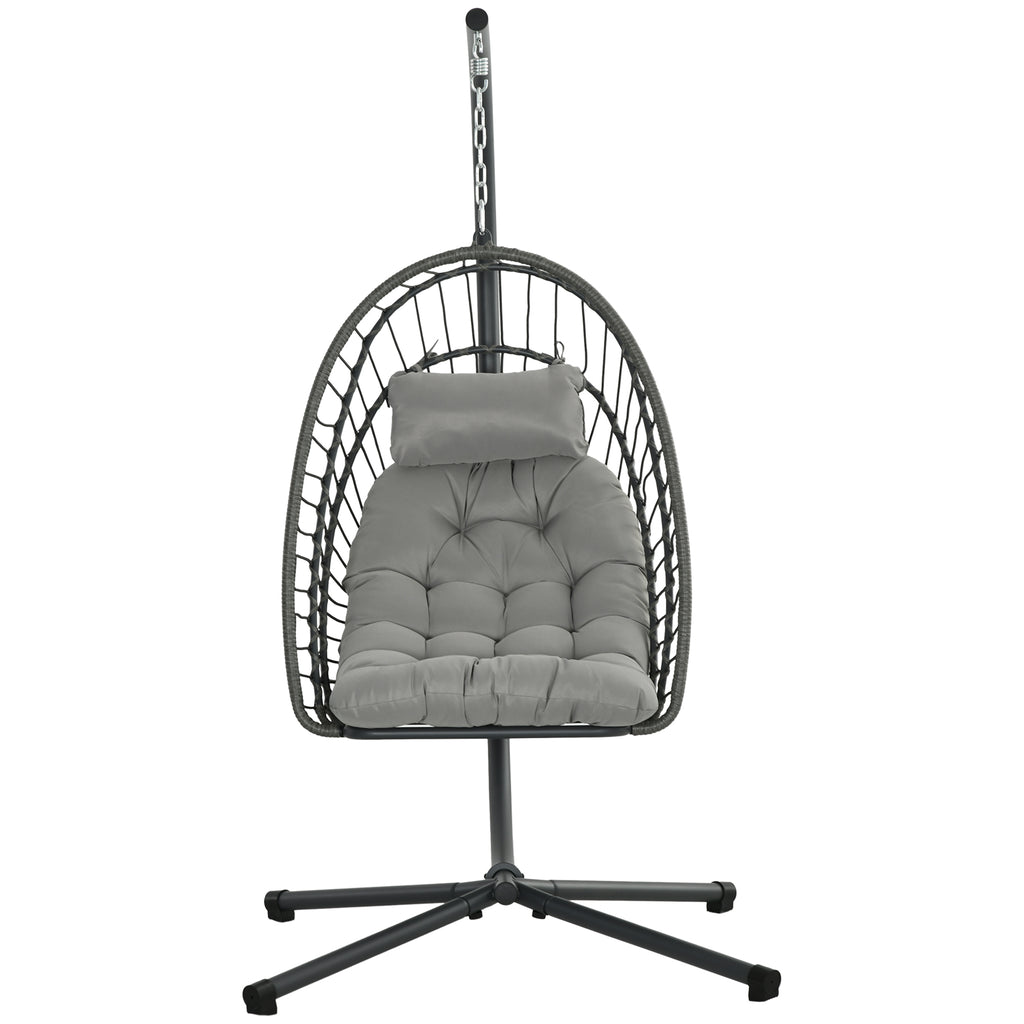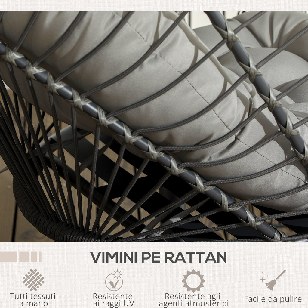 Dondolo Pensile da Giardino in Rattan PE con Cuscino Seduta Pieghevole e Struttura in Acciaio Grigio
