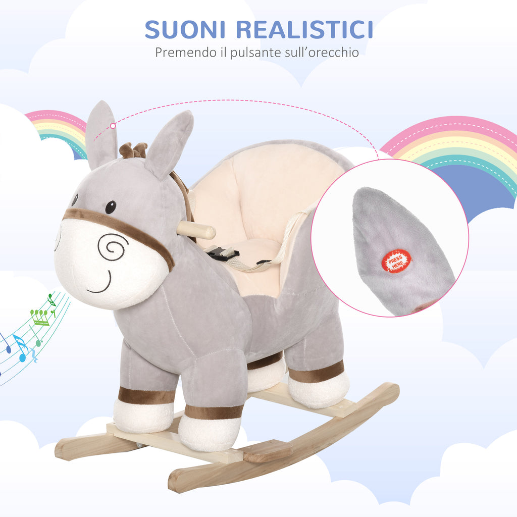 Schaukelstuhl für Kinder aus Holz Plüsch Esel mit Sound