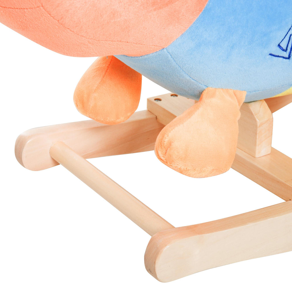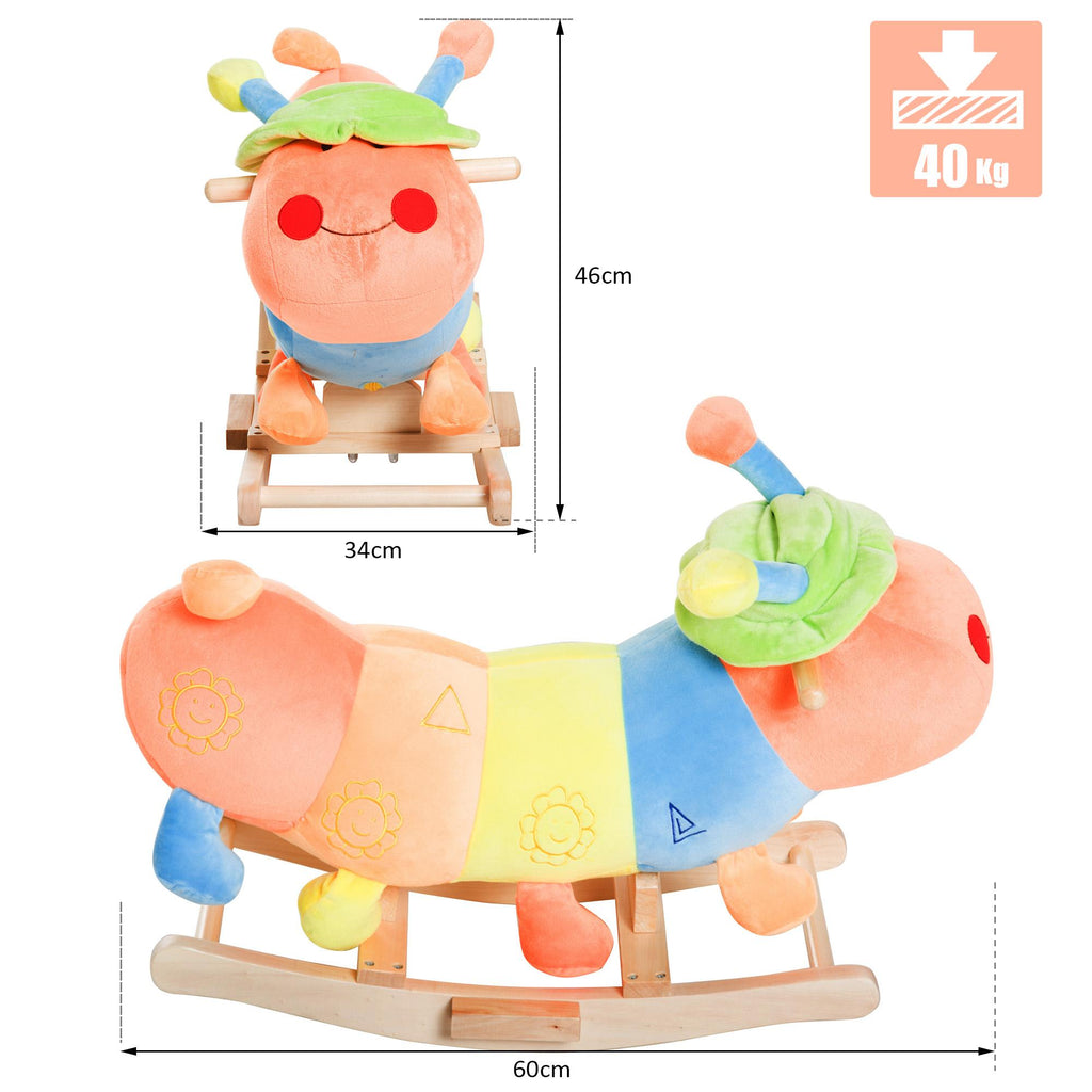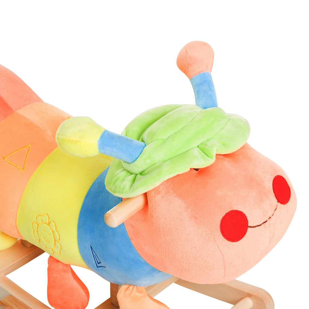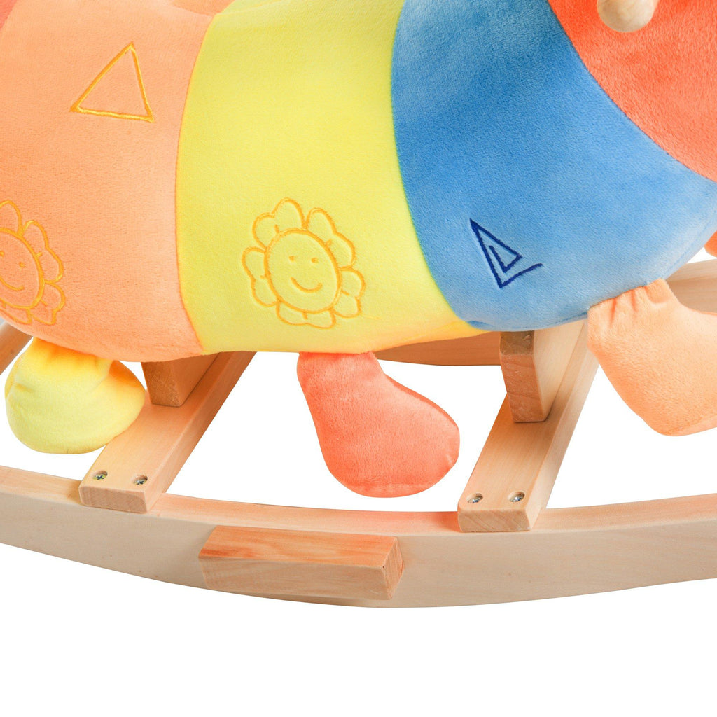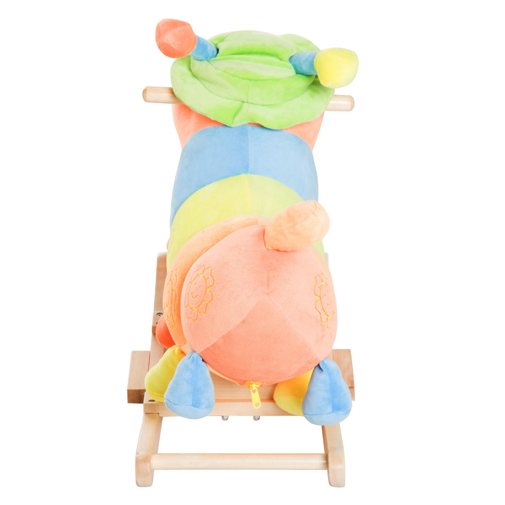 Schaukelstuhl für Kinder aus Holz und buntem Raupenplüsch