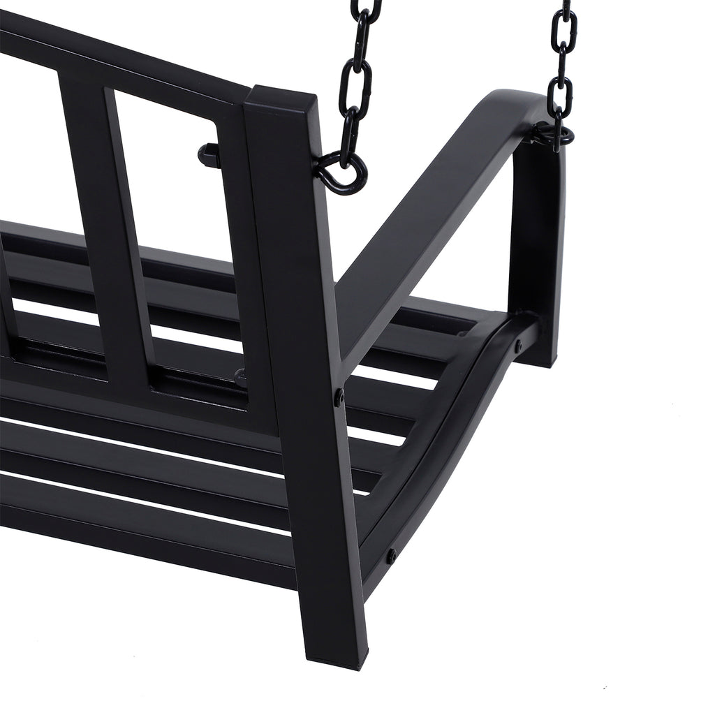 Hängender 2-Sitzer-Gartenschaukelstuhl aus schwarzem Metall